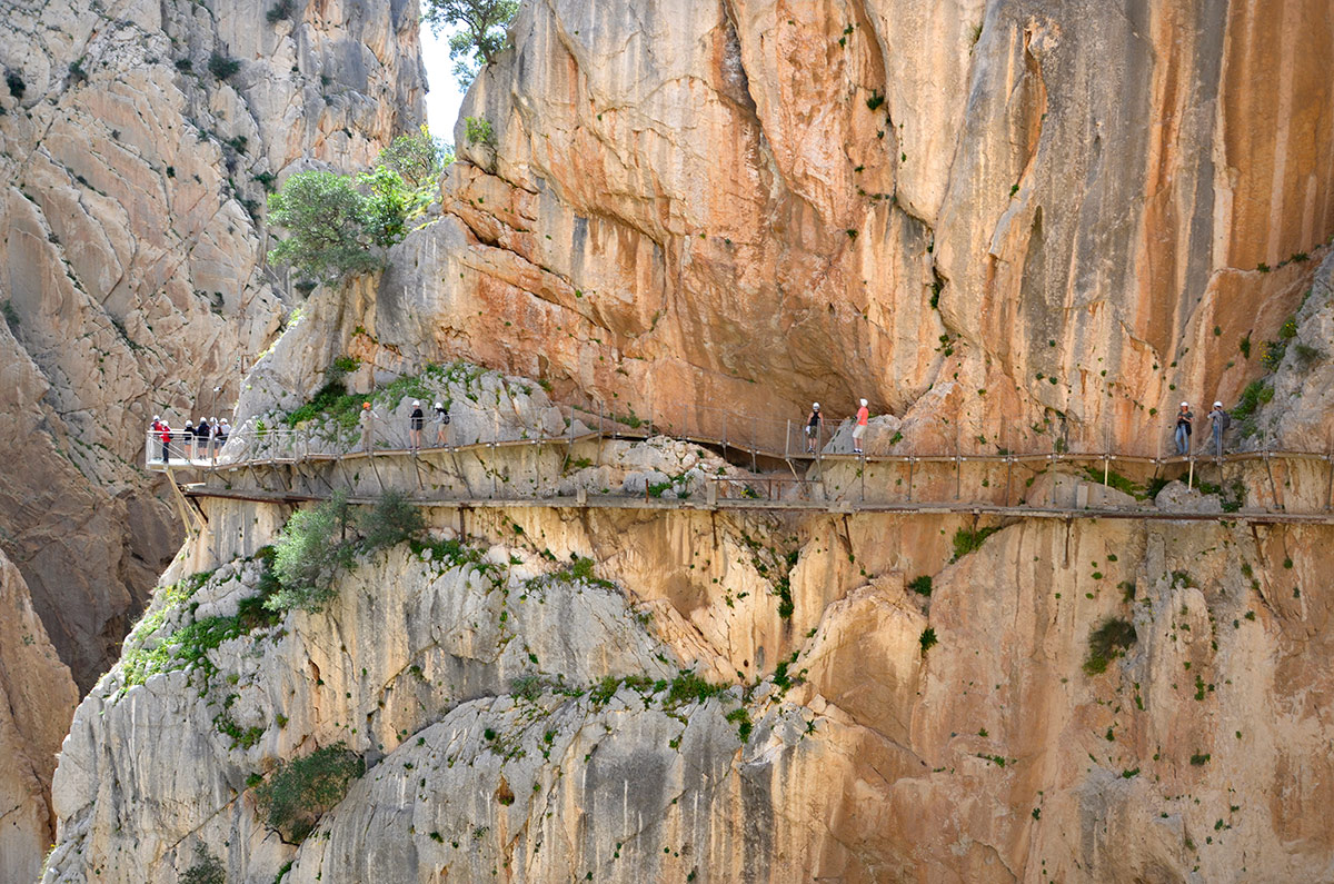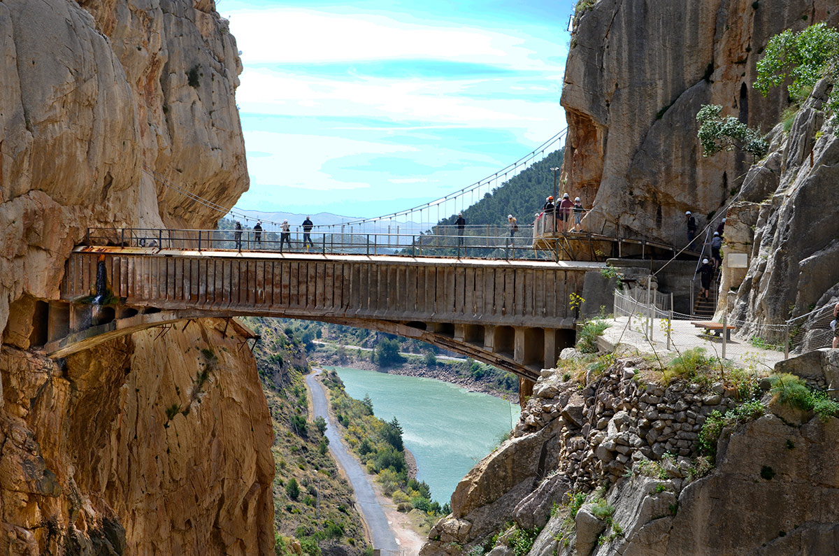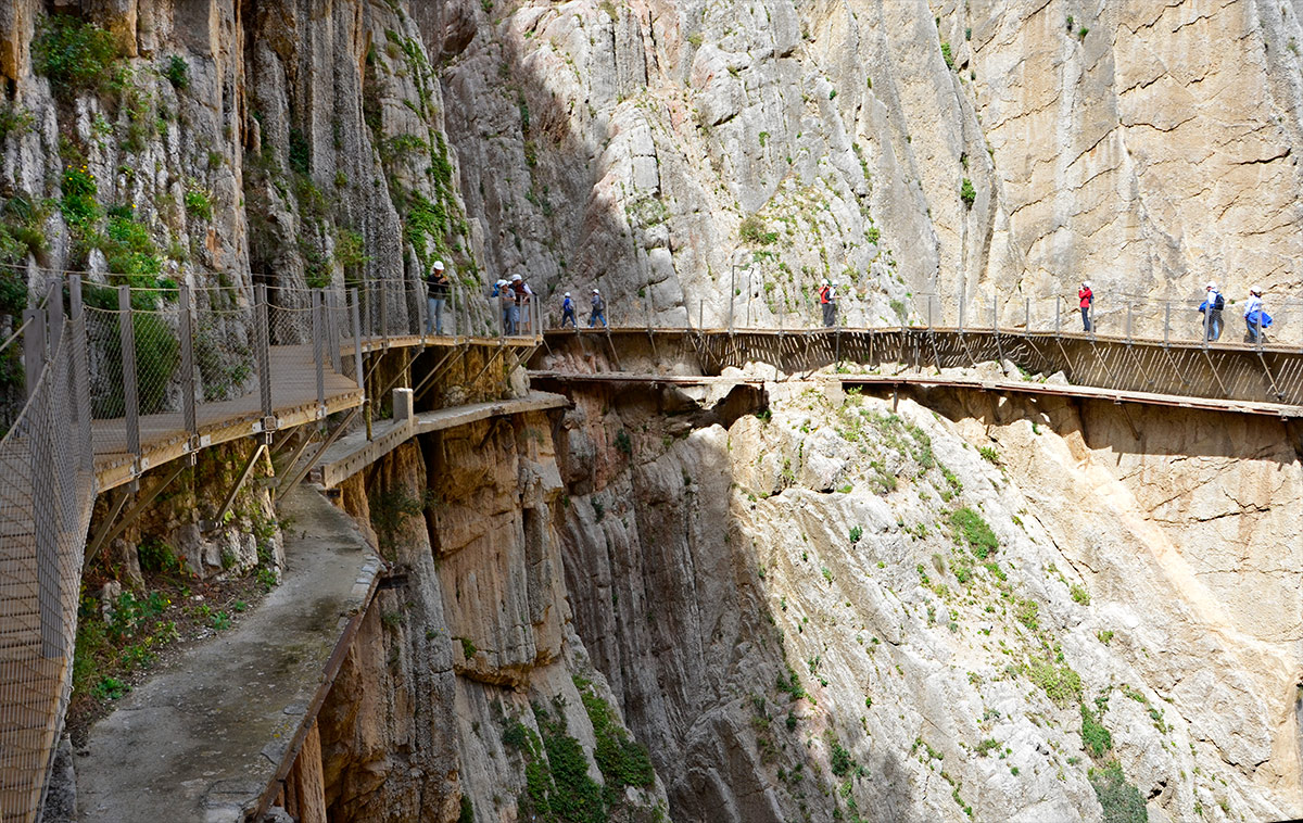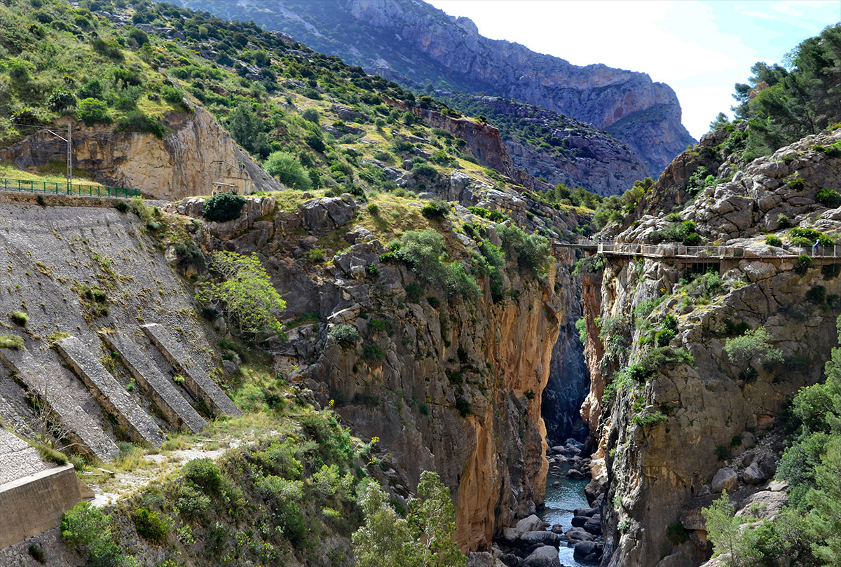 El caminito del Rey va por las laderas escarpadas del rio Guadalhorce