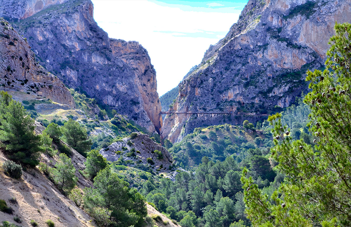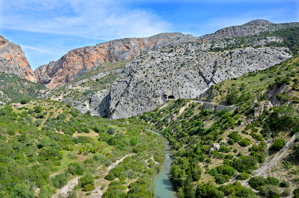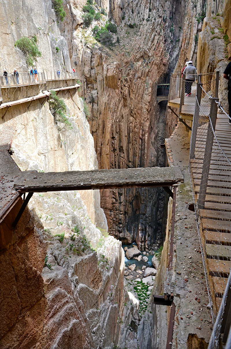 El caminito del Rey va por las laderas escarpadas del rio Guadalhorce