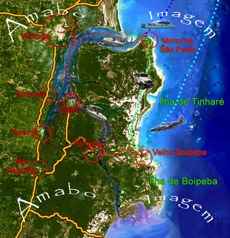 Desde el terminal marítimo ubicado frente al Mercado Modelo (en Salvador) también se puede tomar un Catamrán directo hasta el Morro de Sao Paulo, y desde ahí, tratar de conseguir una lancha rápida que vaya hasta Vela Boipeba, o bien algún Jeep 4x4 hasta la playa frente a Vela Boipeba y cruzar el rio do Inferno (que separa la isla de Tinharé de la de Boipeba) en lancha o canoa.