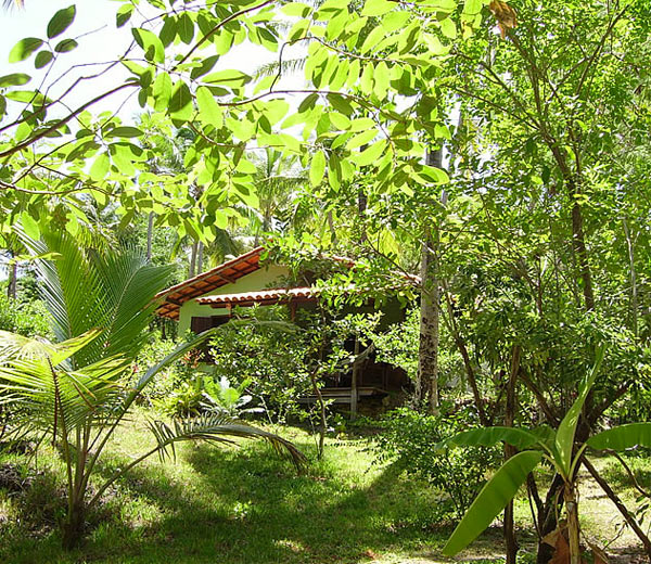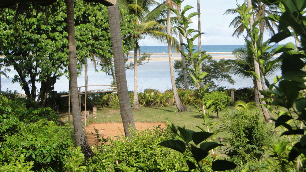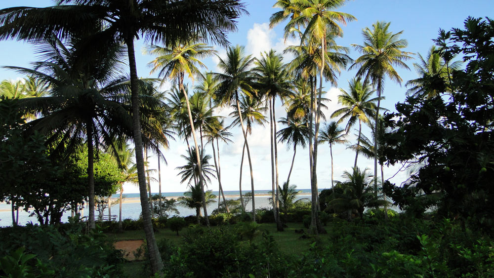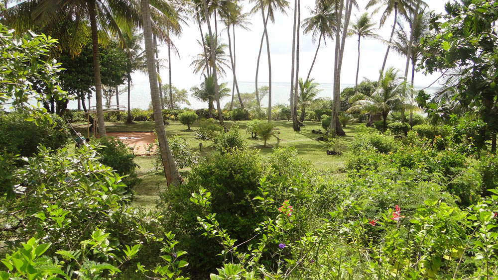 Vista desde el chalet al parque de la pousada y la playa