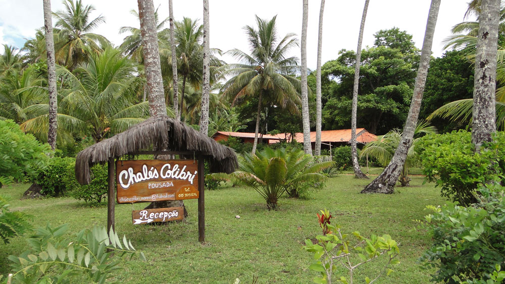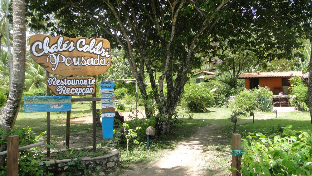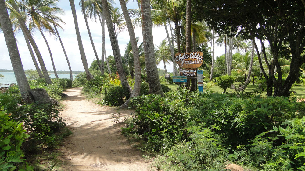 Entrada a la pousada, sobre la trilha que bordea el mar uniendo