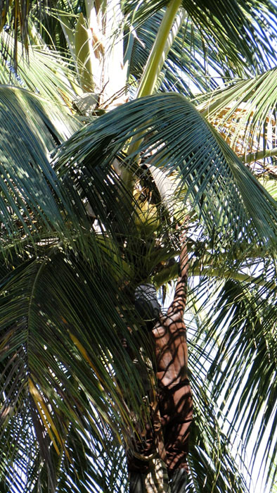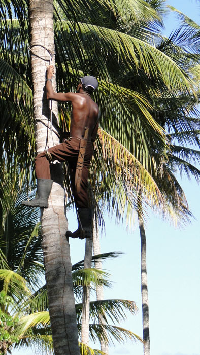 Un empleado de la pousada, podando las palmerasl del parque