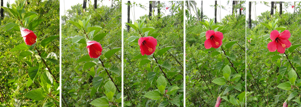 Secuencia de apertura de una rosa china en el transcurso de la