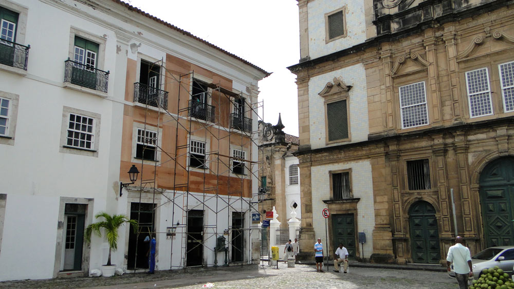 Esquina de la iglesia Sao Francisco. El edificio en reparación