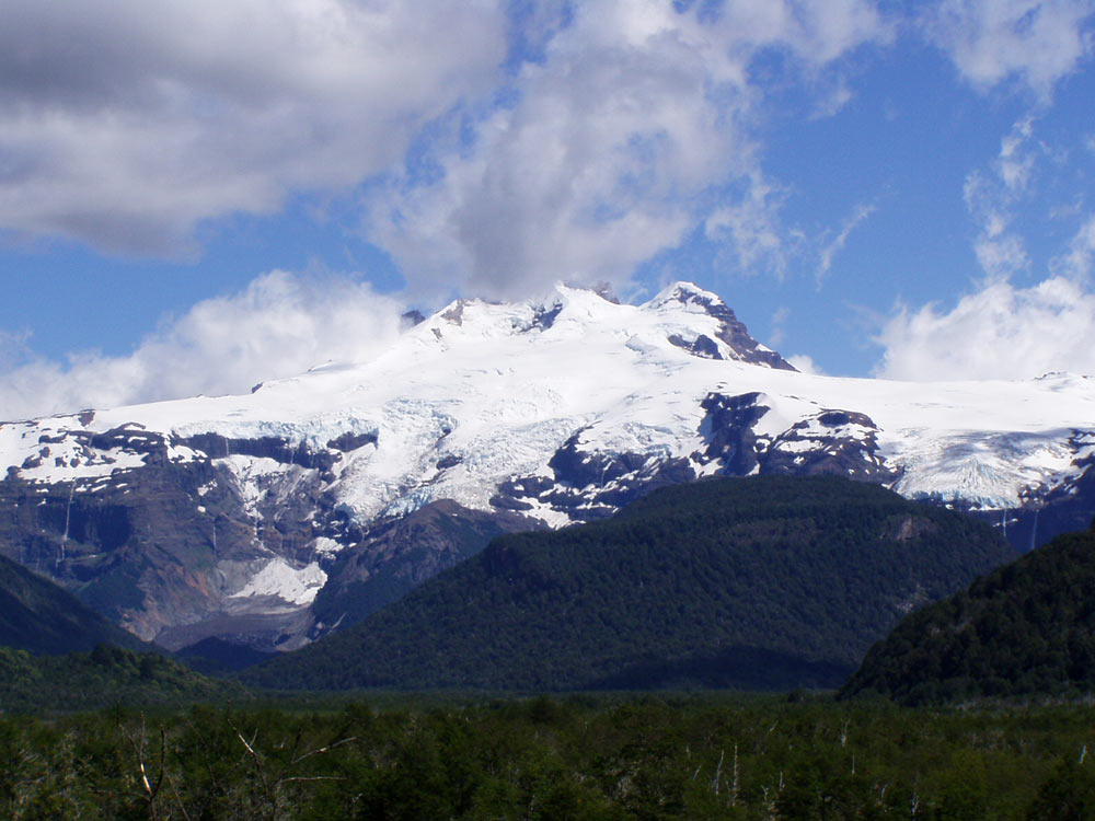 Vista general dl glaciar negro, que baja del Tronador