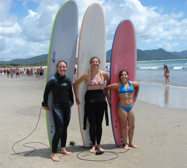 Con otras dos alumnas de surf.