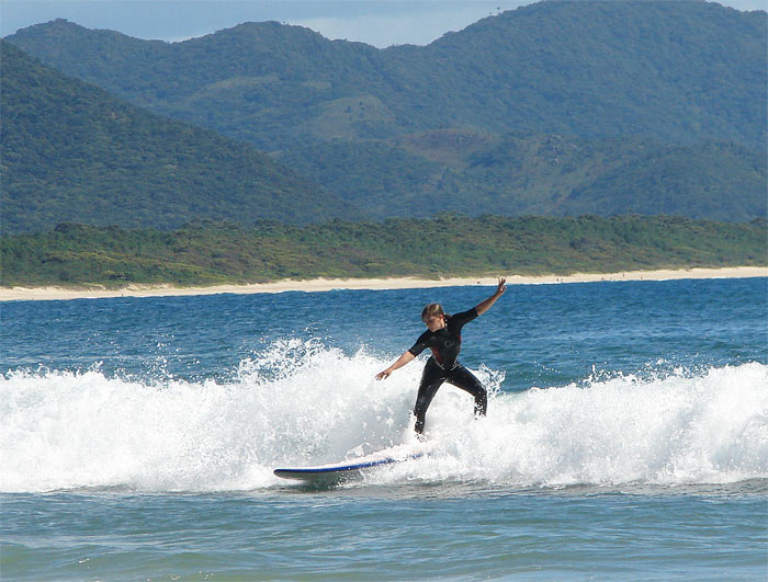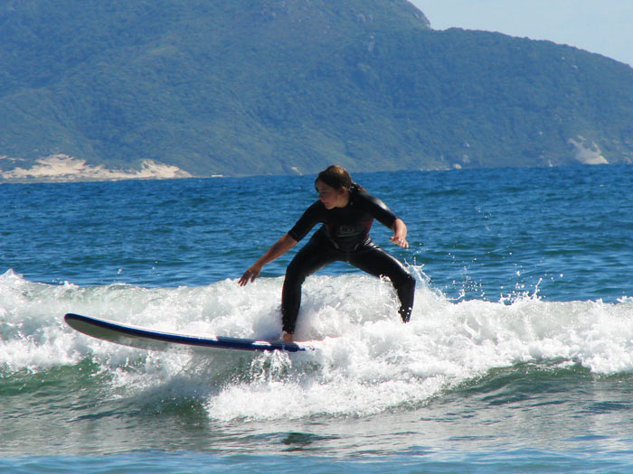 Barra da Lagao está ubicada al este de la isla de Santa Catarina, es decir, del lado del mar con olas. Diana aprovechó esa característica e hizo sus primeras experiencias con una tabla de surf
