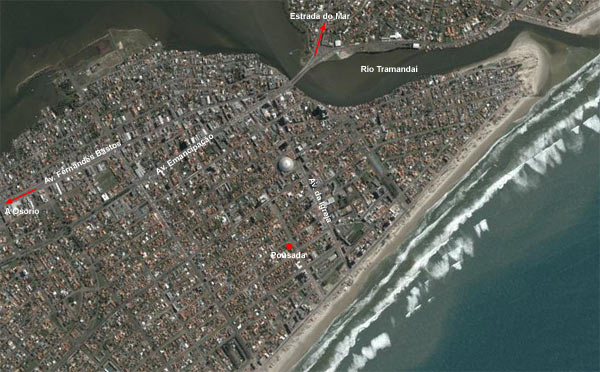 En el caso de Tramandaí, es el balneario mas cercano a Porto Alegre (son unos 100 km de distancia, pero se recorren muy facilmente por la amplia autopista que une Porto Alegre a Osorio, y luego son unos pocos kilómetros más hasta Tramandaí). Nosotros paramos en la Pousada Villa Bella, y tuvimos tiempo para recorrer la playa y parte del balneario.