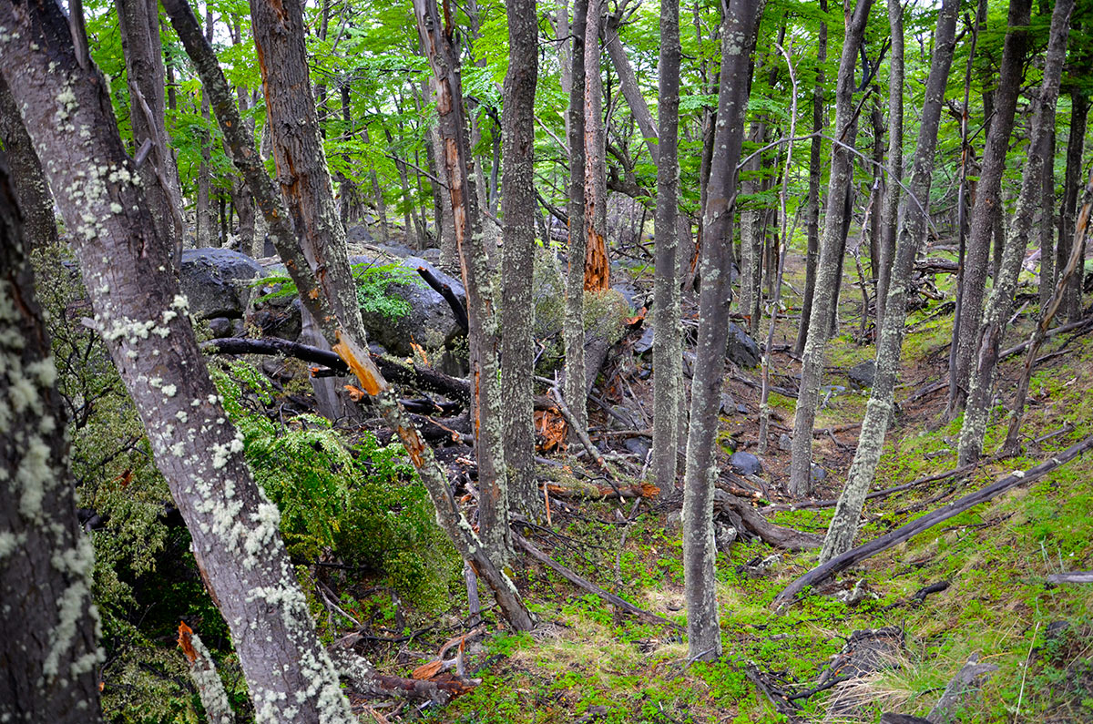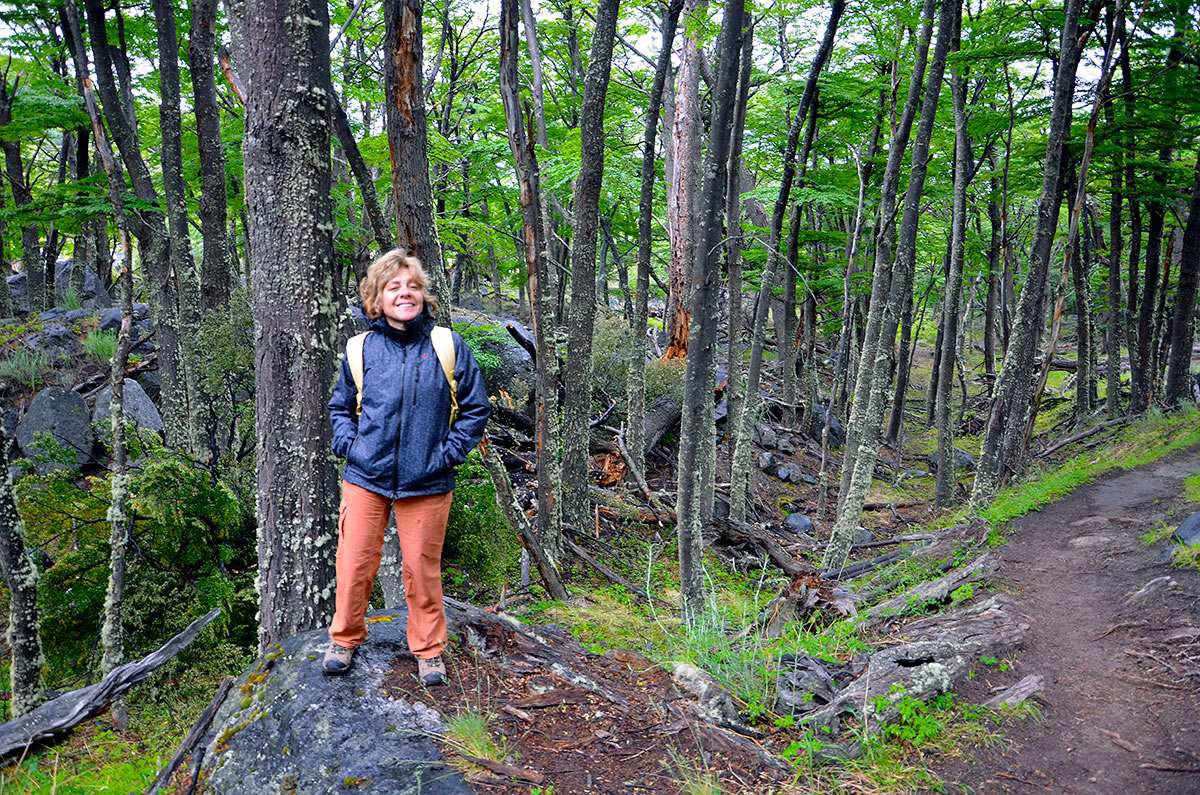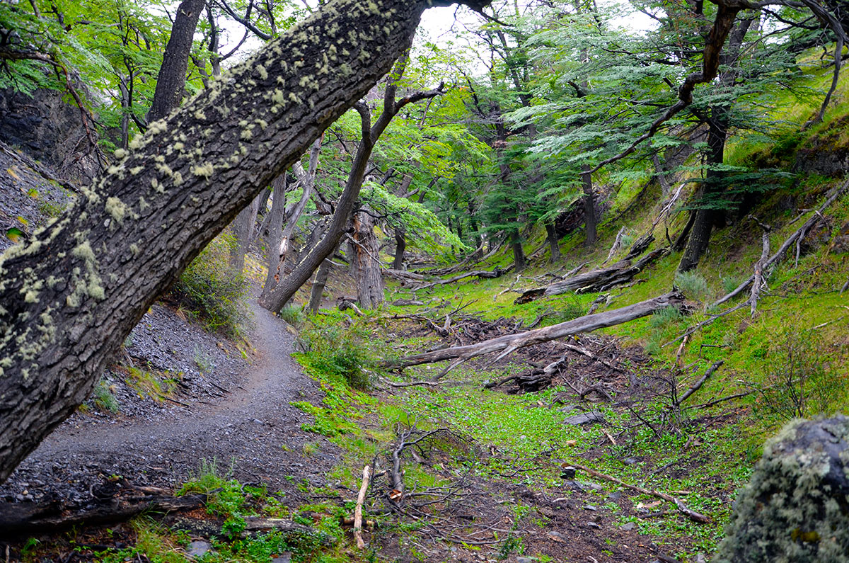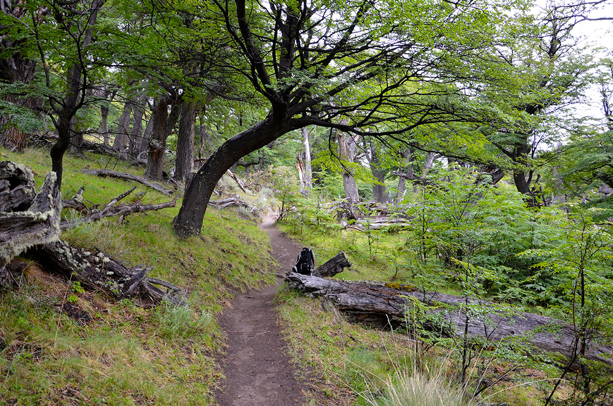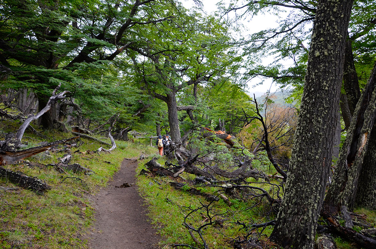 Trekking por el bosque, en el tramo entre el Pilar y el campamento Poincenot
