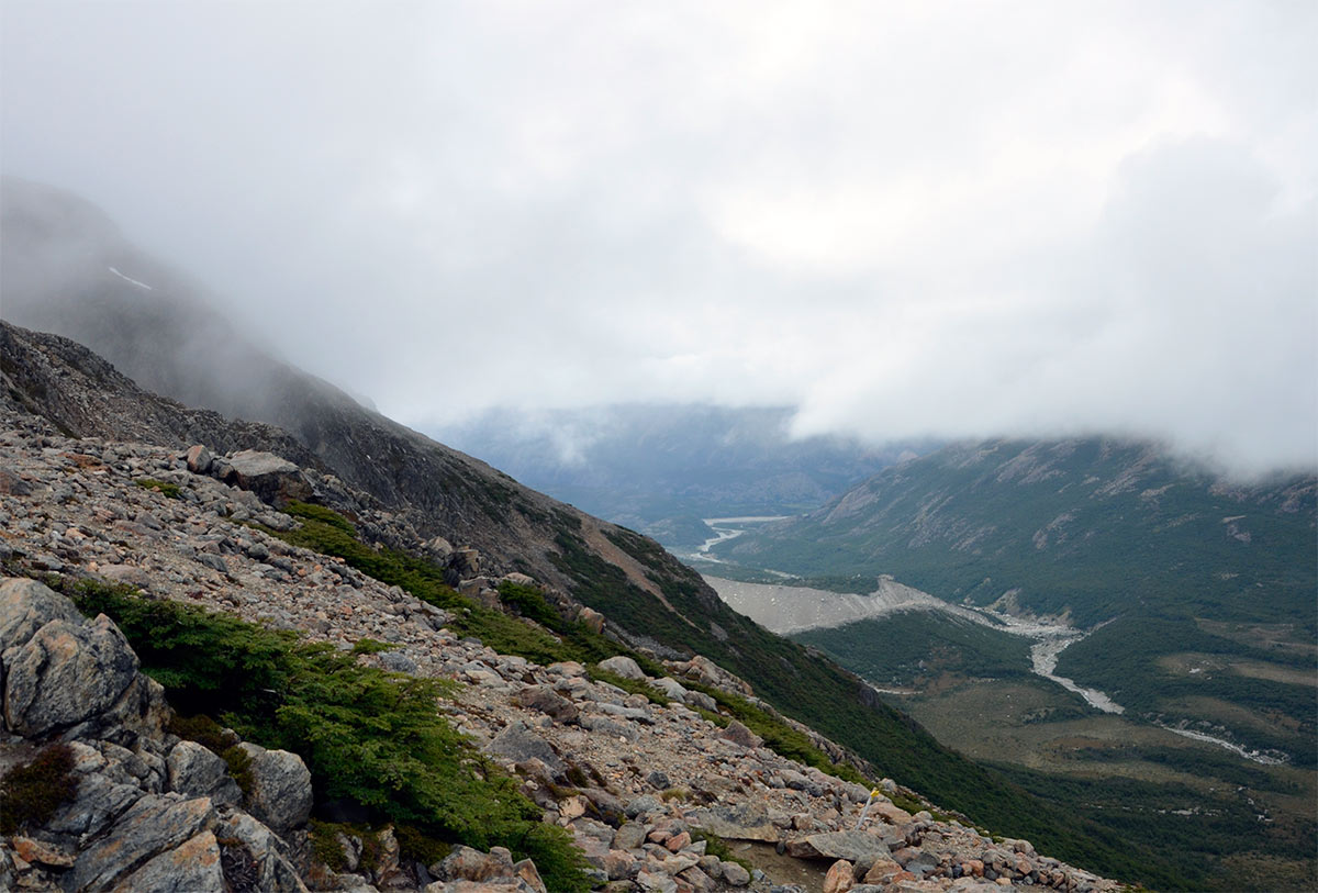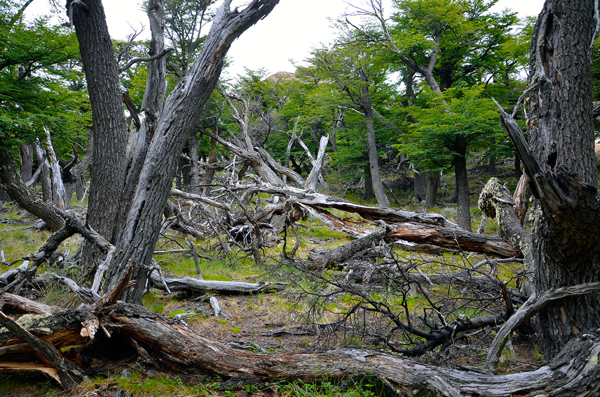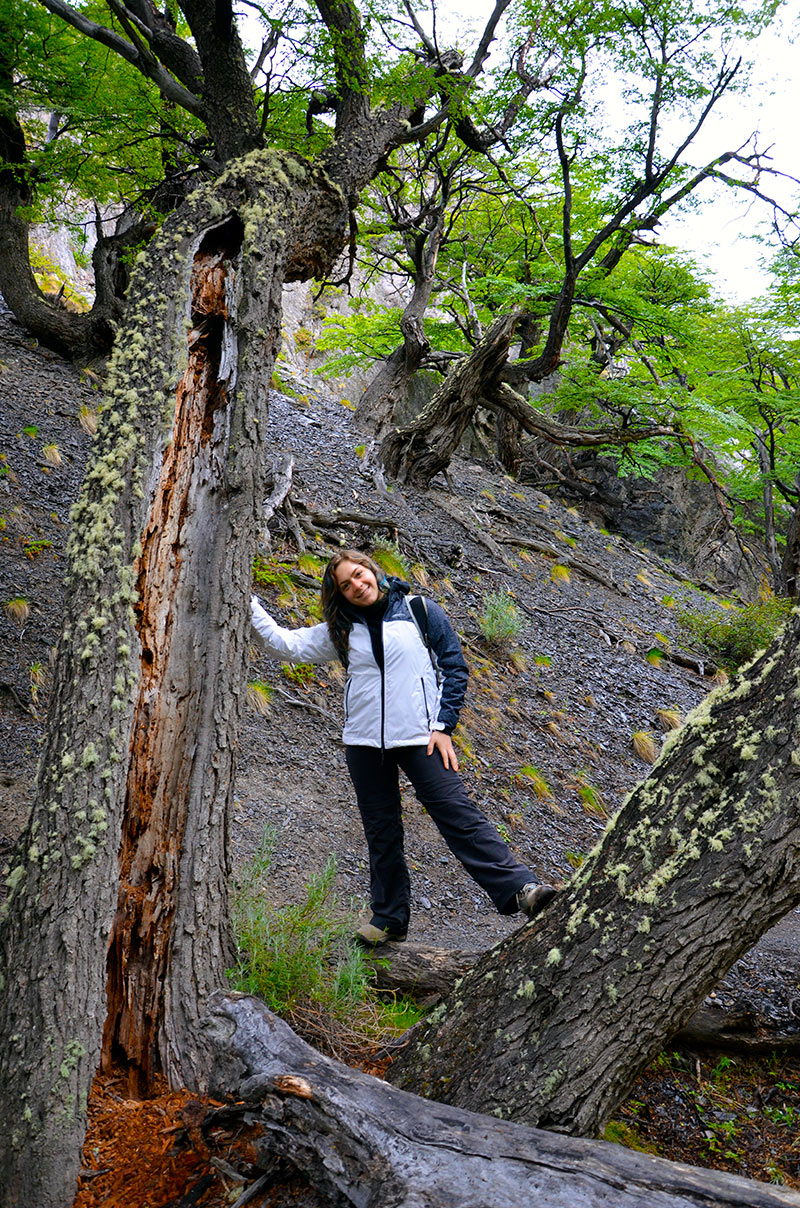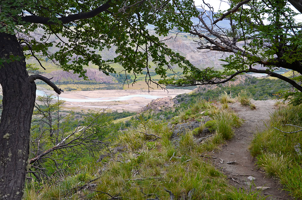Trekking por el bosque, en el tramo entre el Pilar y el campamento Poincenot