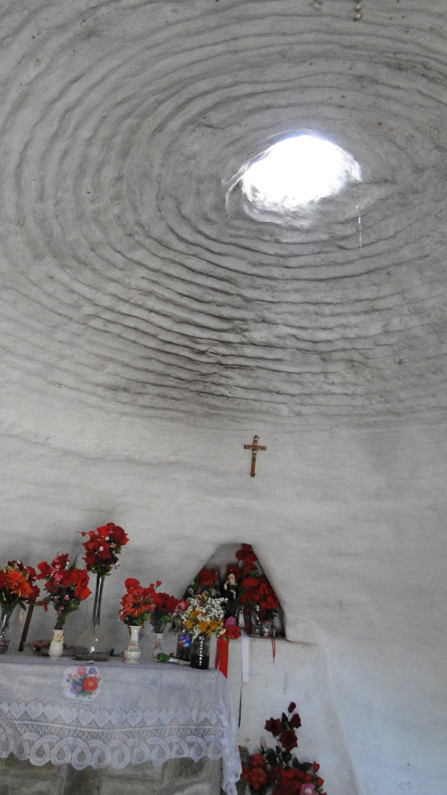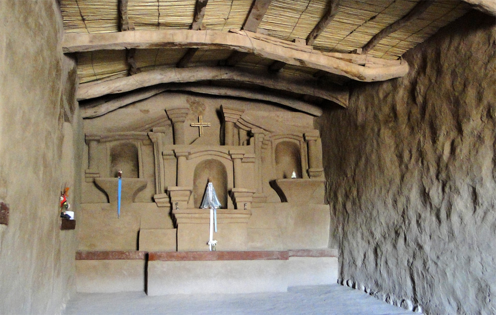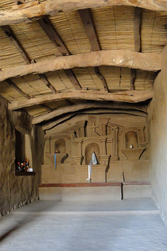 El altar, de adobe, en una sola pieza.