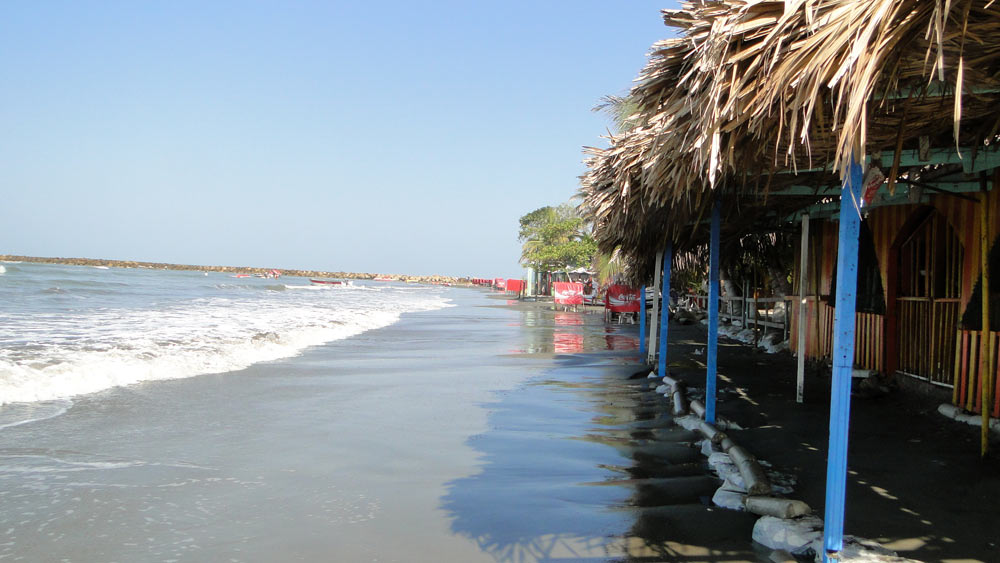 Hacia la Boquilla, las playas se van poblando de puestos populares, que en épocas de vacaciones o fines de semana, se llenan de gente