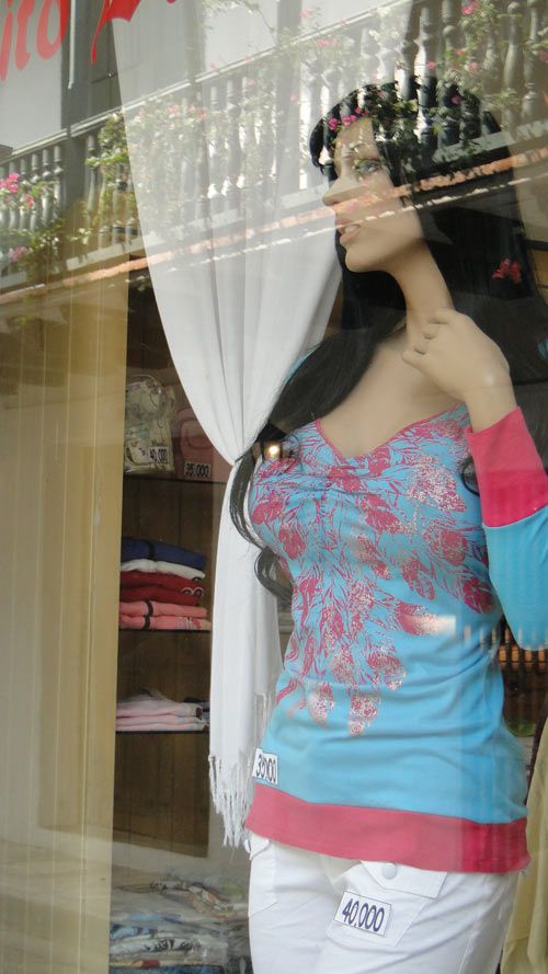Un detalle final, que no es muy "histórico", pero que no dejó de llamarnos la atención: el busto de esta maniquí, en uno de los negocios.
