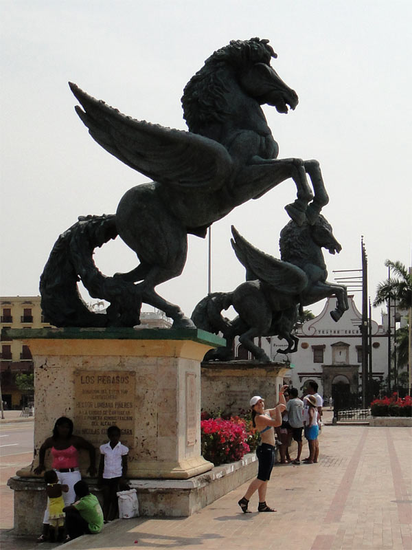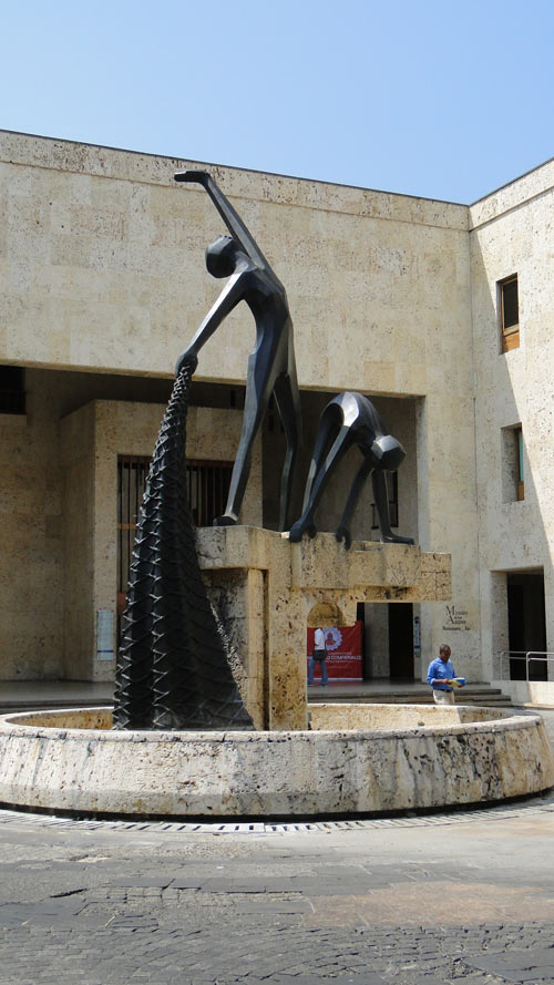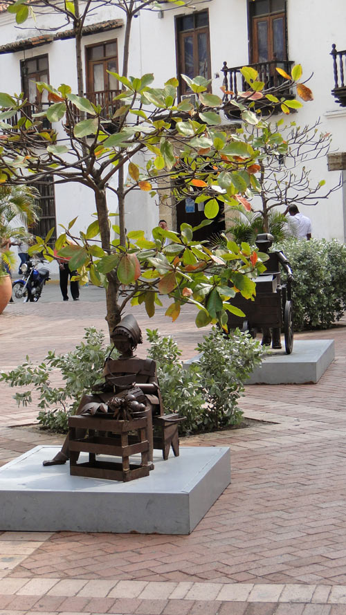 La entrada del restaurant San Pedro (ubicado frente a la iglesia San Pedro Claver), y las esculturas de chatarra de esa plaza (realizadas, creo, por Francisco Cardona Suarez)