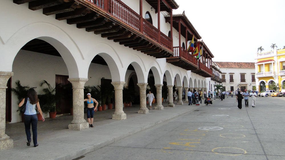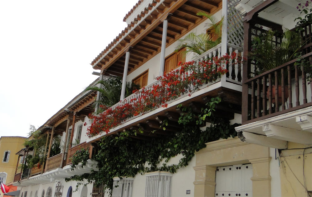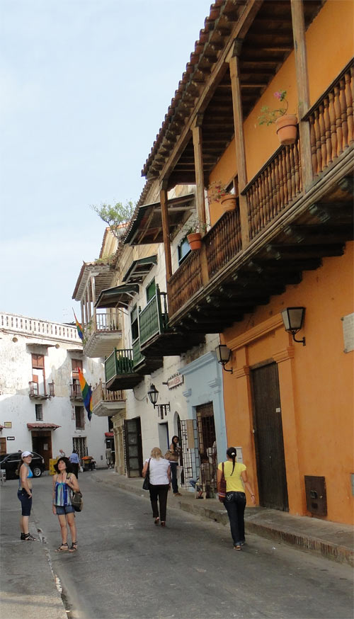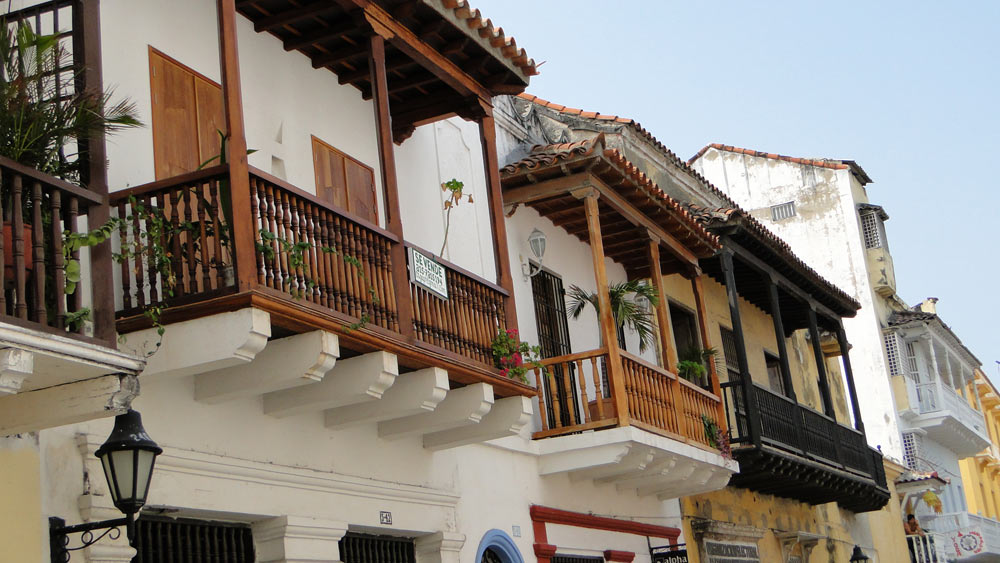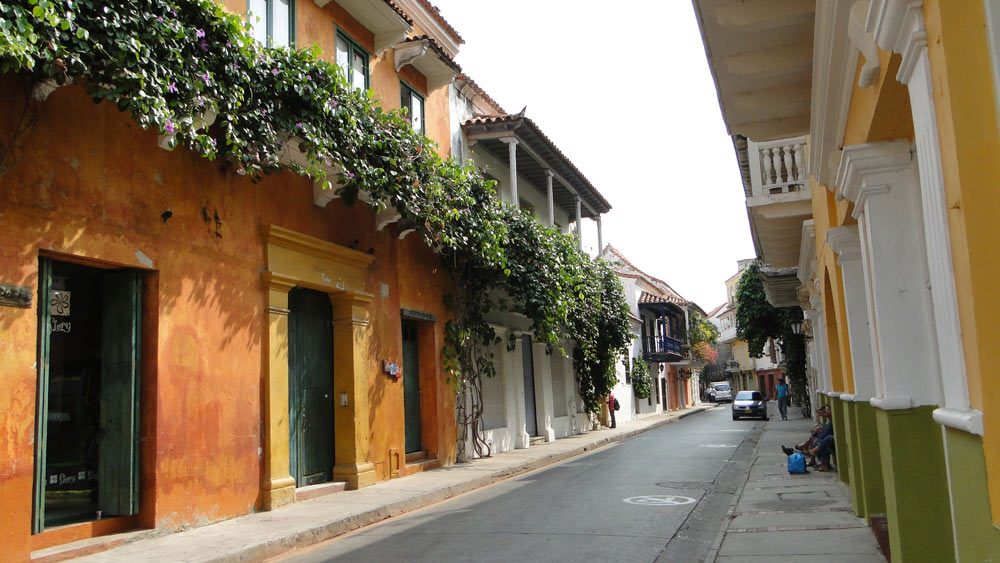 Cartagena es un pequeño laberinto de calles y esquinas como estas. Todos los edificios con balcones y grandes puertas.
