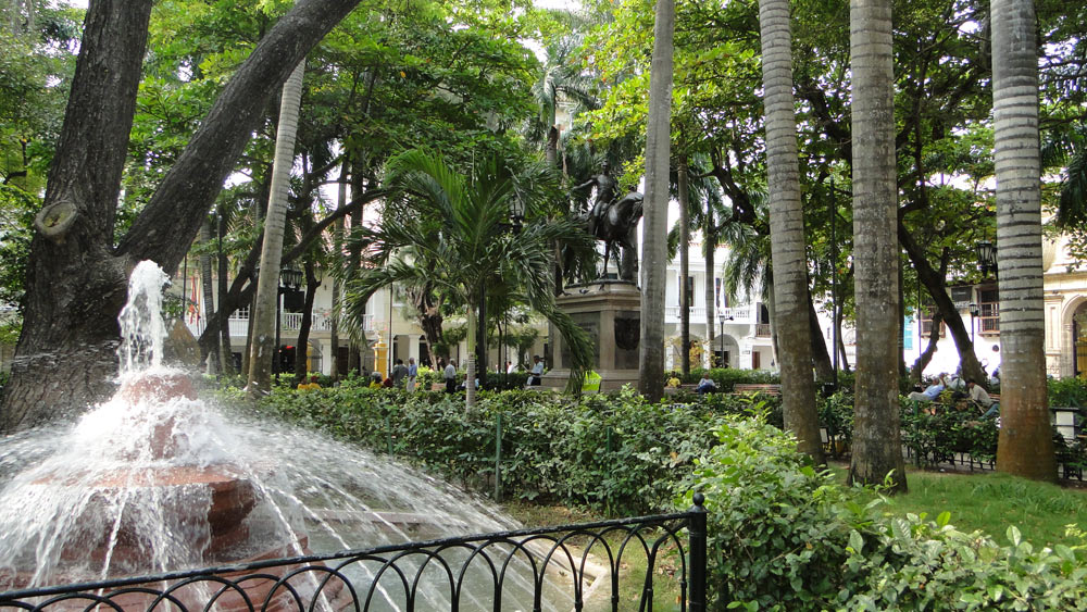 La plaza Simón Bolivar. Un placer estar sentado, a la sombra de todos esos árboles, escuchando el ruido del agua de las fuentes.