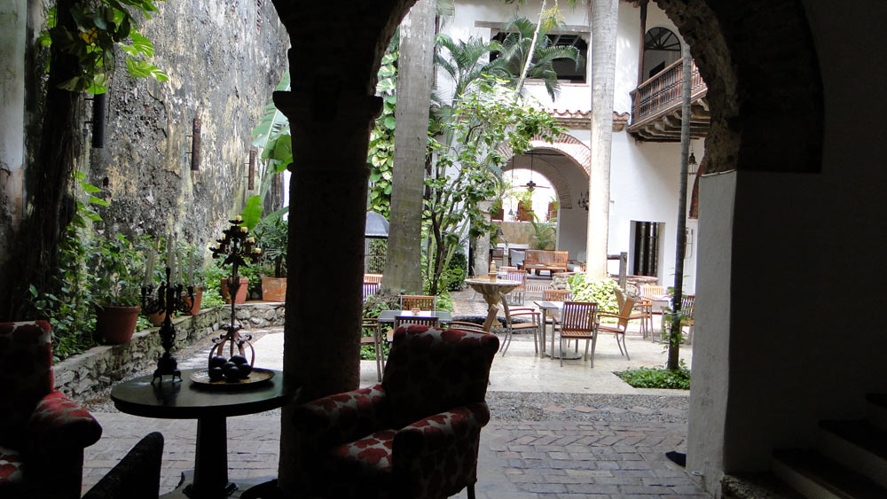 El patio de una de esas casonas, reciclado como hotel boutique ("El Marqués")