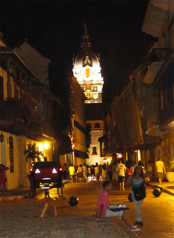 La calle San Pedro Claver y, al fondo, la cúpula de la Catedral
