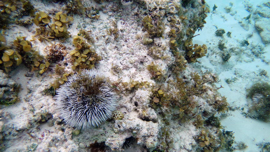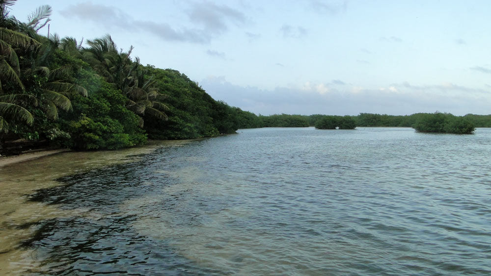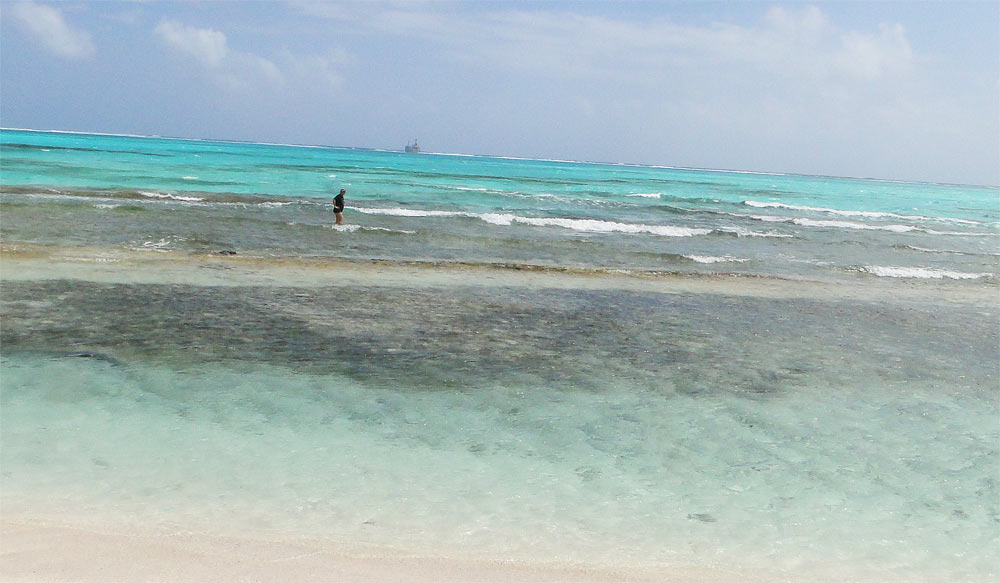 Vista del Rose Cay ("acuario"), caminando hacia el Haynes Cay.