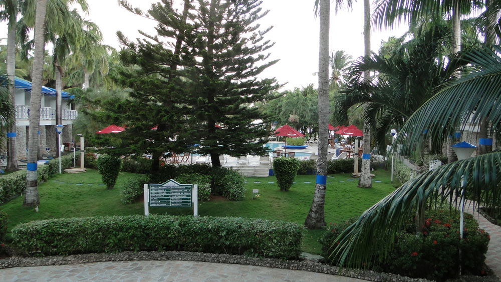 El sector central del hotel, con la piscina (la playa está al fondo)