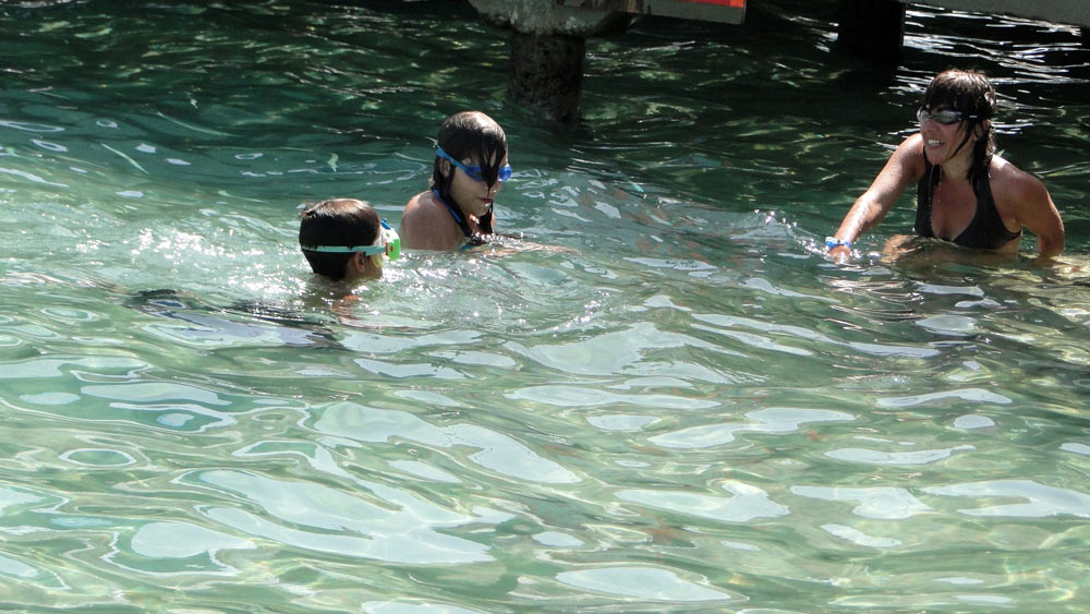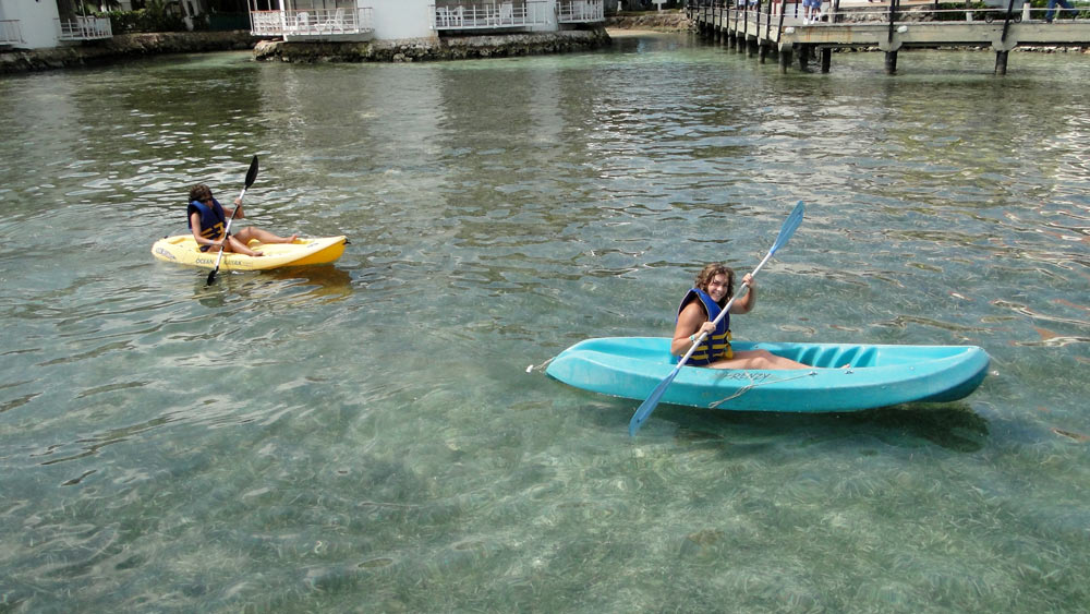 Nora y Diana hacen cayak por la piscina marina