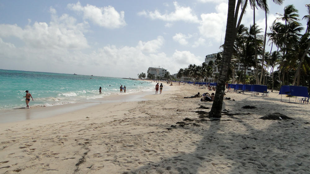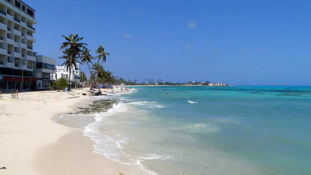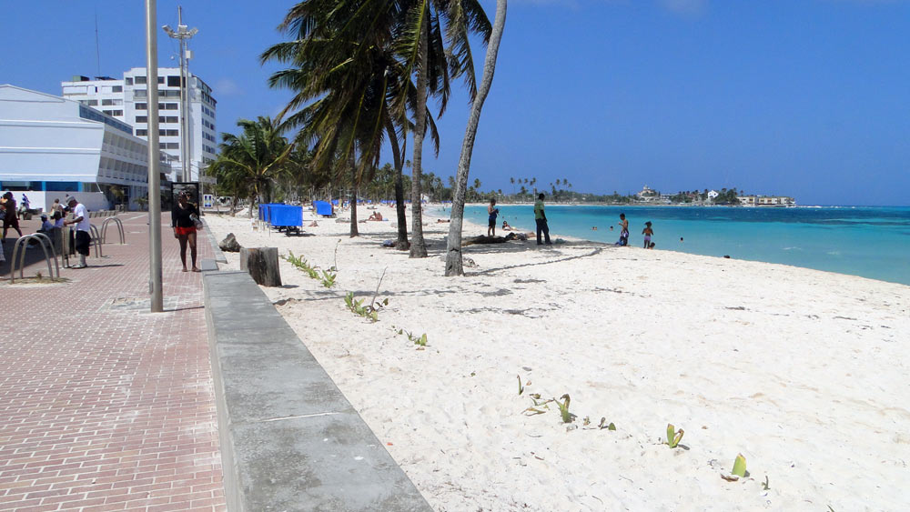 La playa de el Isleño, mirando hacia el oeste: al fondo a la derecha, el Decamerón Maryland