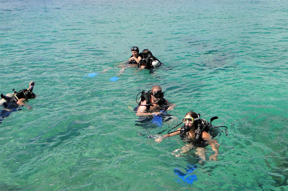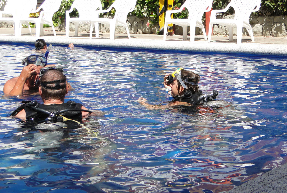 En San Andrés hicimos el bautismo de buceo. Tuvimos un instructor, Mauricio, quien nos dió un breve curso teórico y práctico en una piscina del hotel...