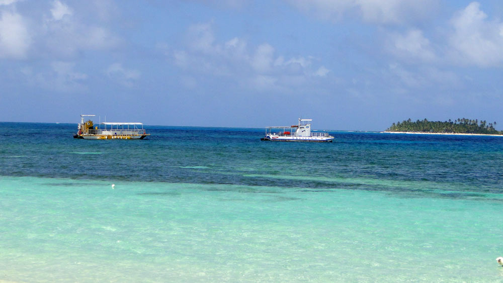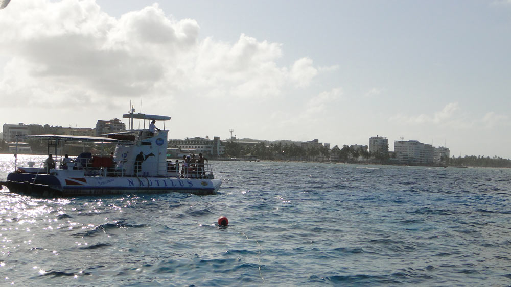 A bordo del Manatí. Al fondo, las playas del norte (bahia Sardina)