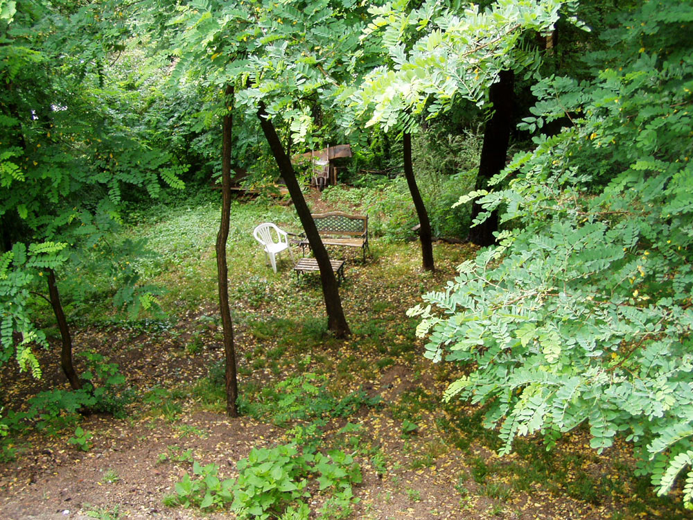 Vista desde el balcon de la cabaña, hacia la entrada (con la
