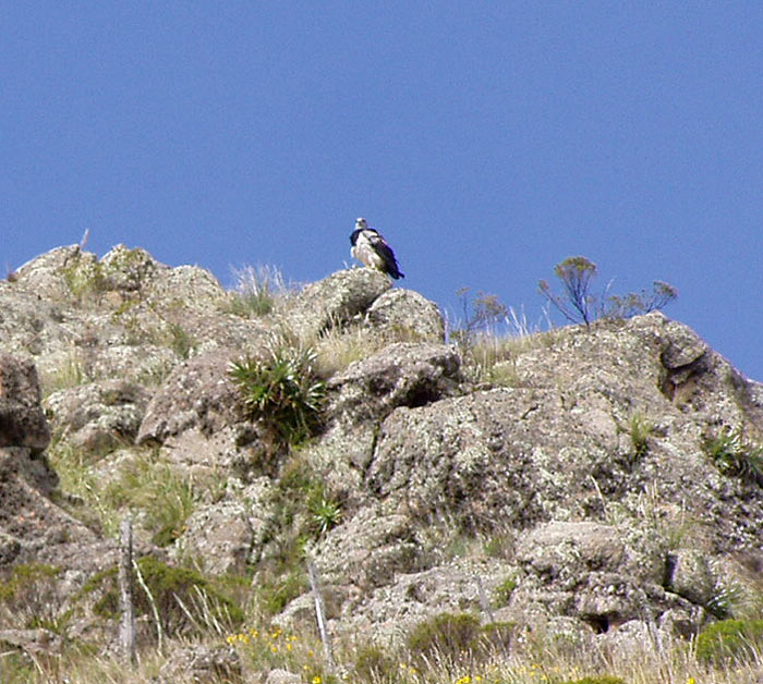 Un Condor, parado en un peñasco, cerca del parador El Condor