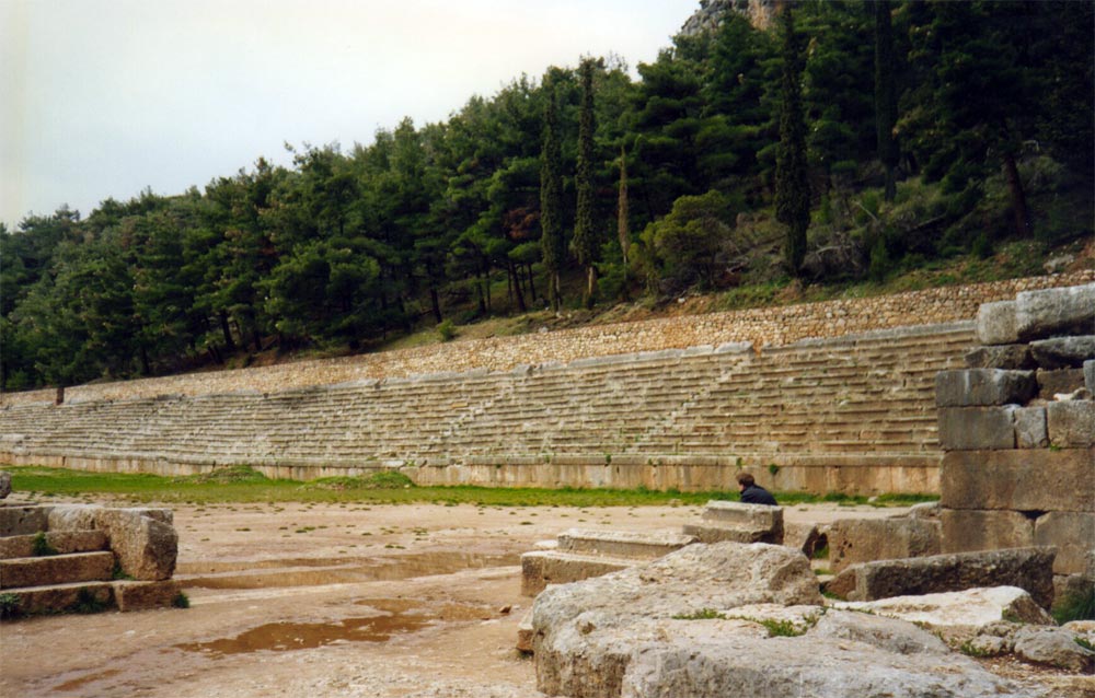 En el estadio (tenía una capacidad para 7000 personas y en él se realizaban los juegos píticos)