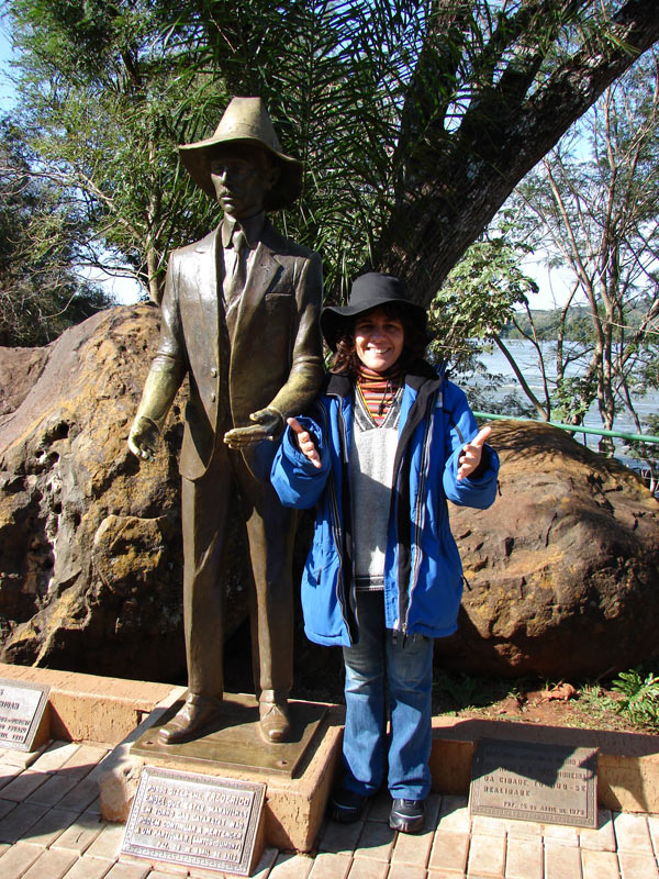 Nora junto a la estatua de Santos Dumont, en el parque, al final