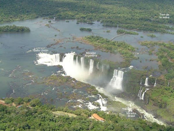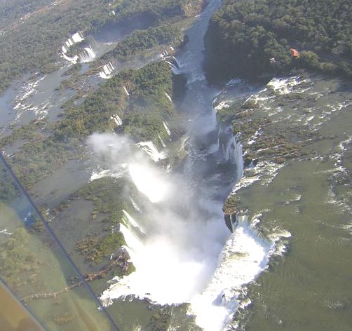Las vistas aéreas son un punto de vista que nos ofrece otra "dimensión" de donde estamos "parados" (y sino, vean las fotos aéreas de diferentes partes del mundo, de Yann Arthus-Bertrand). Desde el lado brasilero parte un tour en el que se sobrevuelan las cataratas en helicóptero (ver aquí y aquí). Nosotros no lo hicimos, pero he seleccionado algunas fotos subidas a internet por otros turistas que sí lo han hecho, que permiten tener una vista general de las Cataratas.