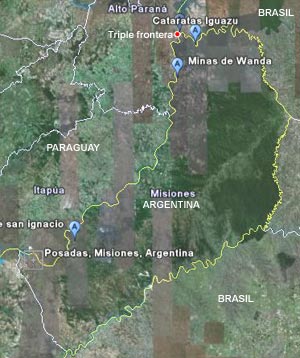 Teniendo en cuenta el caos que atraviesa el sistema aéreo de nuestro país (agravado en esos días por el caos del sistema brasilero, catastrofe del vuelo de TAM en Congonhas incluido), decidimos ir en bus, lo que nos permitía incluir un par de excursiones extra a las ruinas jesuíticas de San Ignacio Miní y las minas de piedras semipreciosas de Wanda.