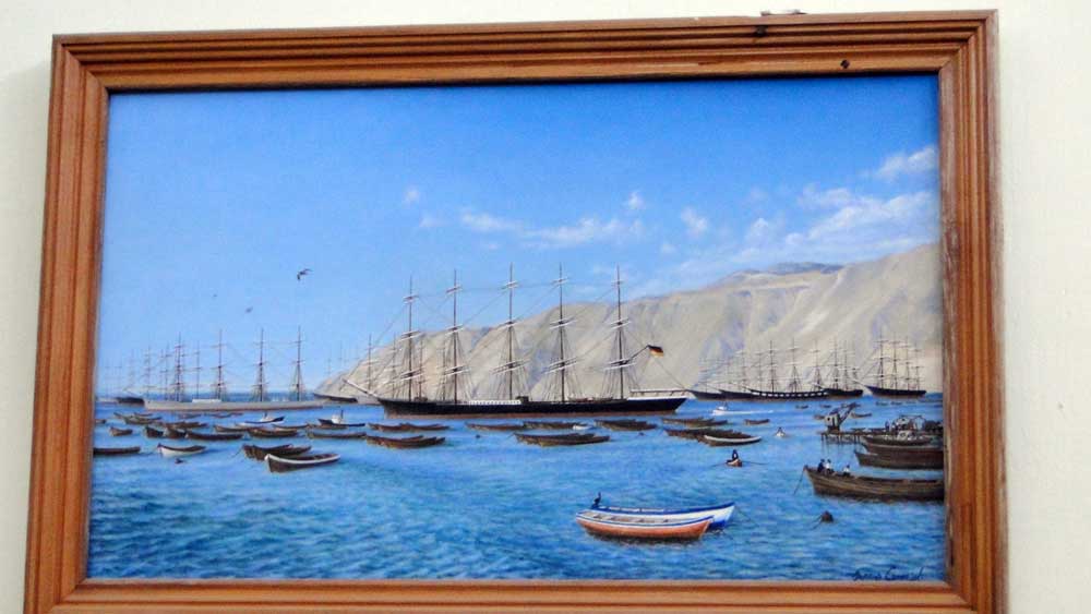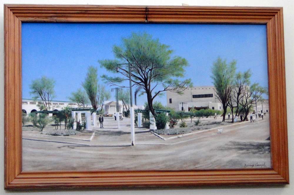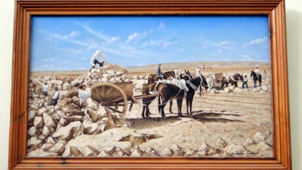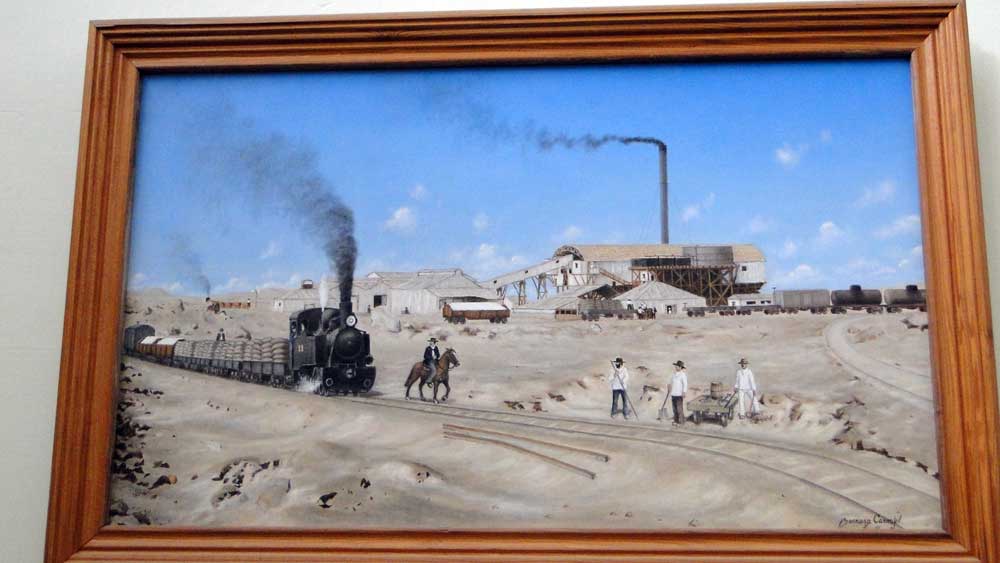 Un cuadro que representa el tren que lleva el salitre a Iquique.