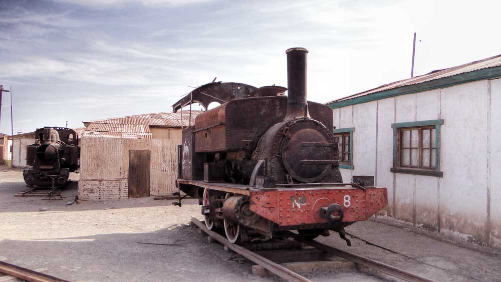 Las locomotoras del tren que llevaba el salitre hasta el puerto