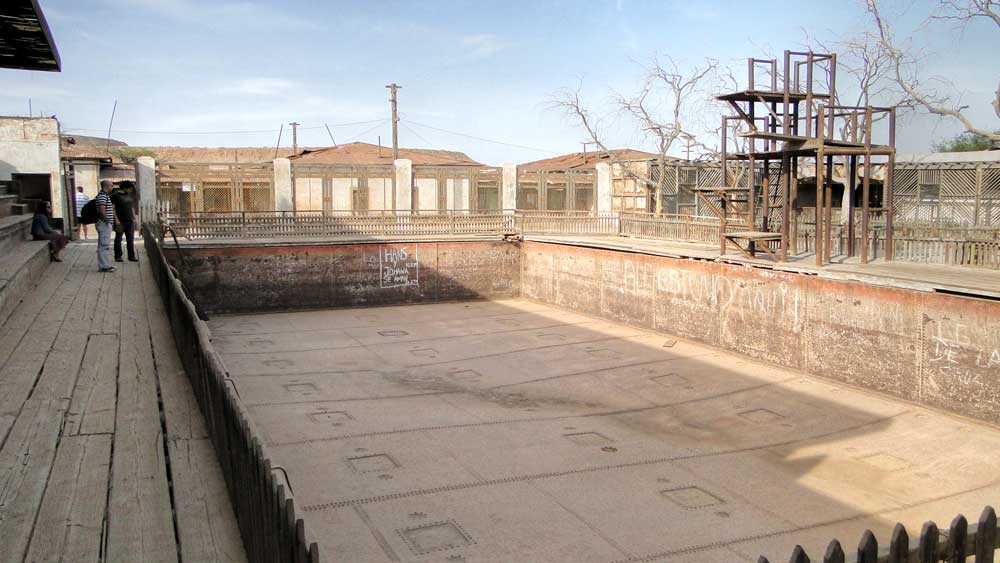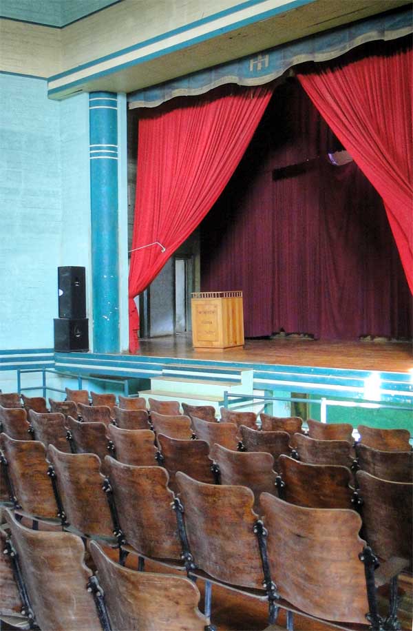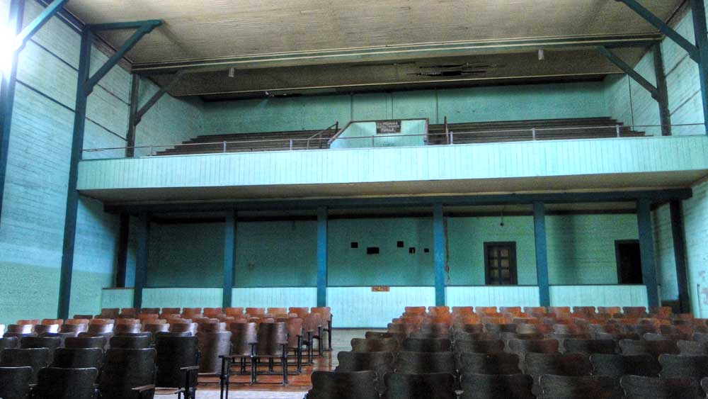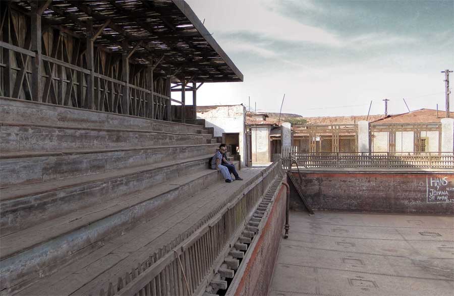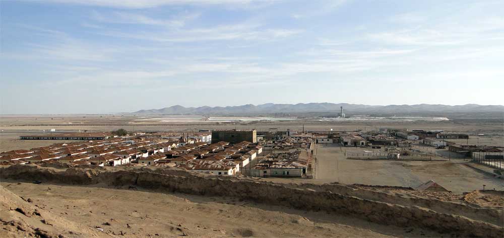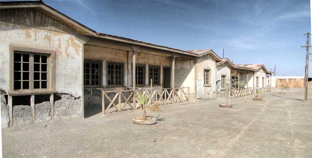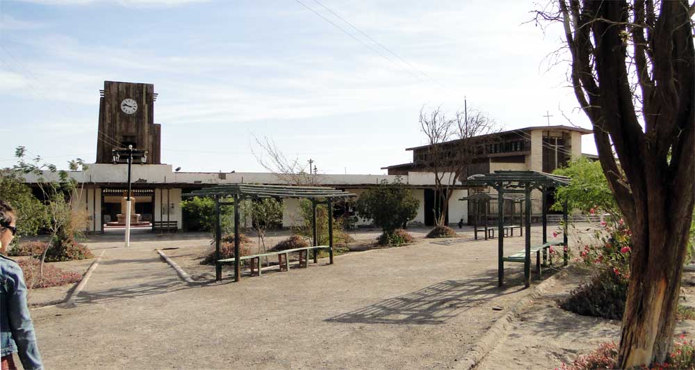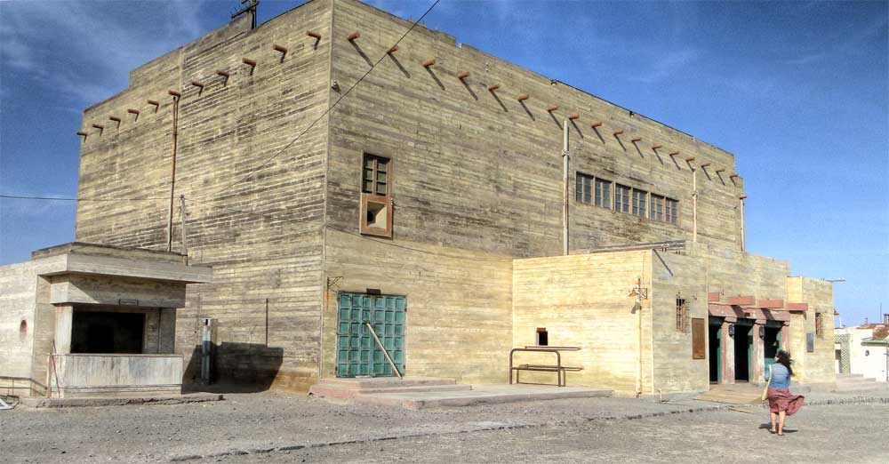 El bloque grande es el teatro. Al fondo, la actual salitrera