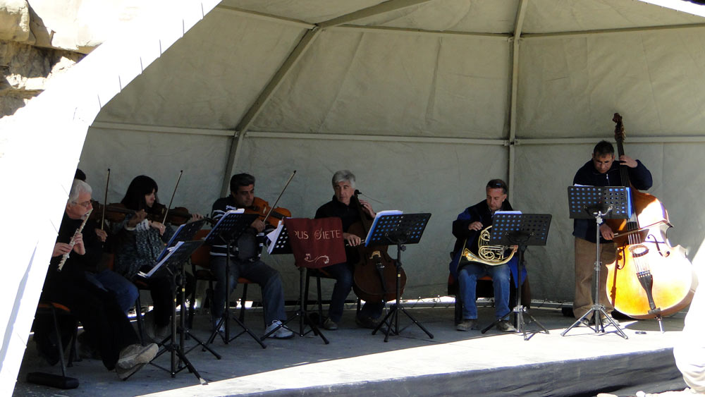 Al pie del submarino, el conjunto Opus 7 espera a los visitantes