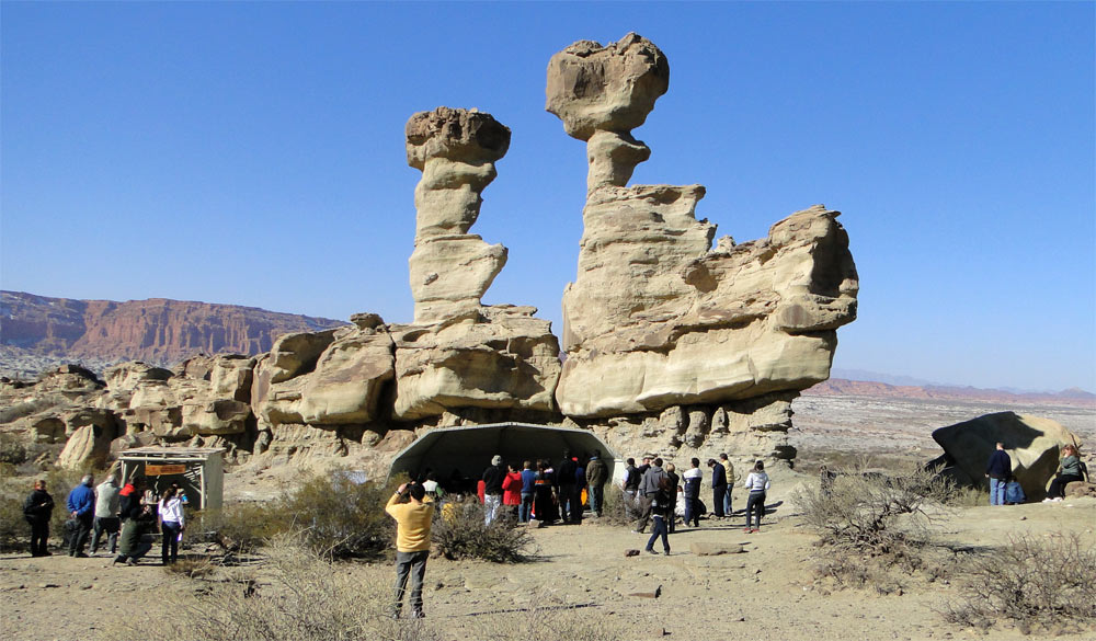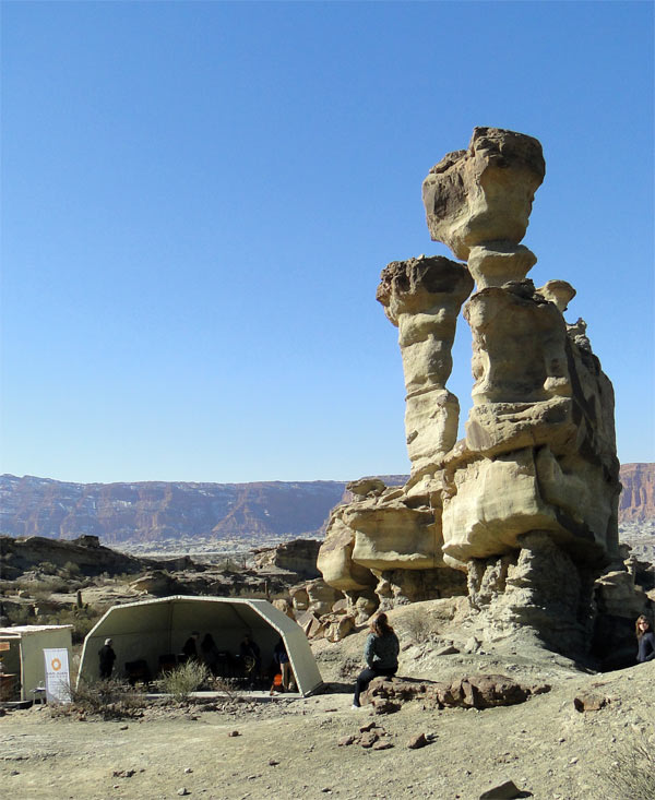El submarino es una de las formas más características y difundidas de Ischigualasto. En esta parada nos encontramos en la mayor altura del recorrido y mediante una corta caminata se puede disfrutar de esta geoforma desde diferentes perspectivas, además de tener la oportunidad de una visión espectacular de toda la hoyada. De aquí se observará, desde las castañas rocas de la Formación Los Rastros hasta las Barrancas Coloradas, intercalándose una interminable sucesión lomadas grises de la fosilífera Formación Ischigualasto