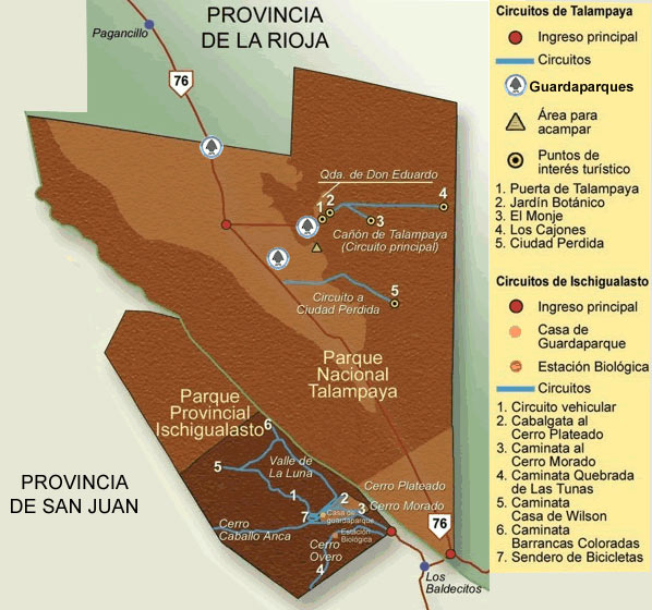 Mapa con la ubicación de los parques nacionales de Talampaya e