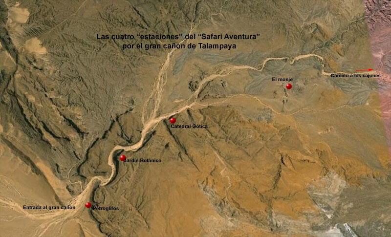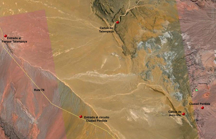 Mapa de Google Earth del Cañon de Talampaya, con la ubicación