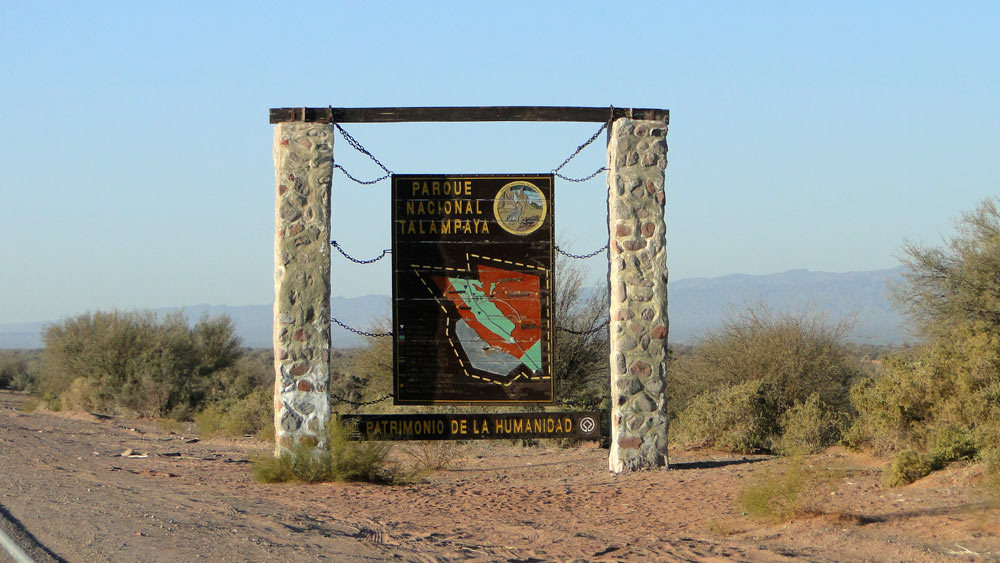 Carteles enla ruta 76 anunciando el Parque Nacional Talampaya