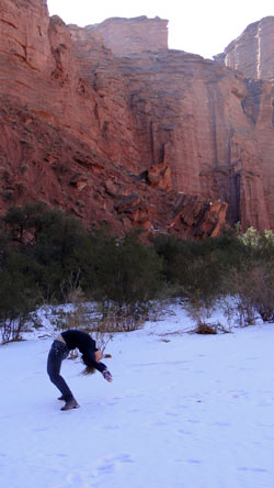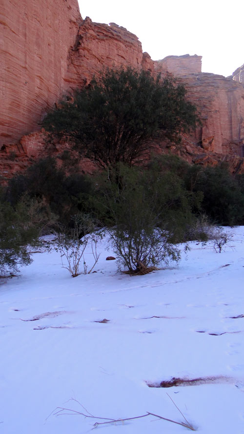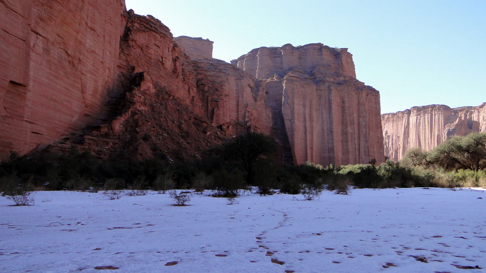 Nieve al pie de la muralla del cañon