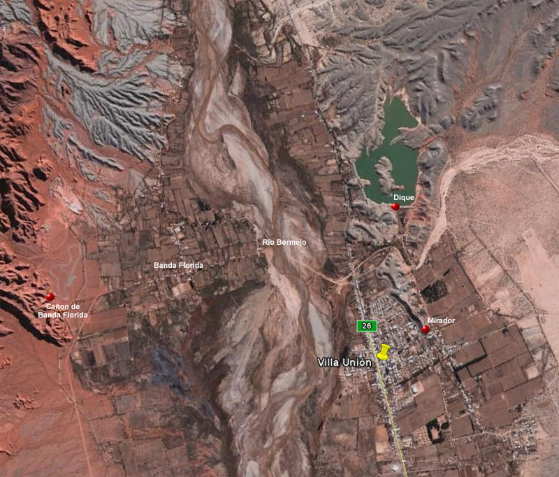 Vista de Banda Florida, y Villa Unión. Al fondo, la cordillera