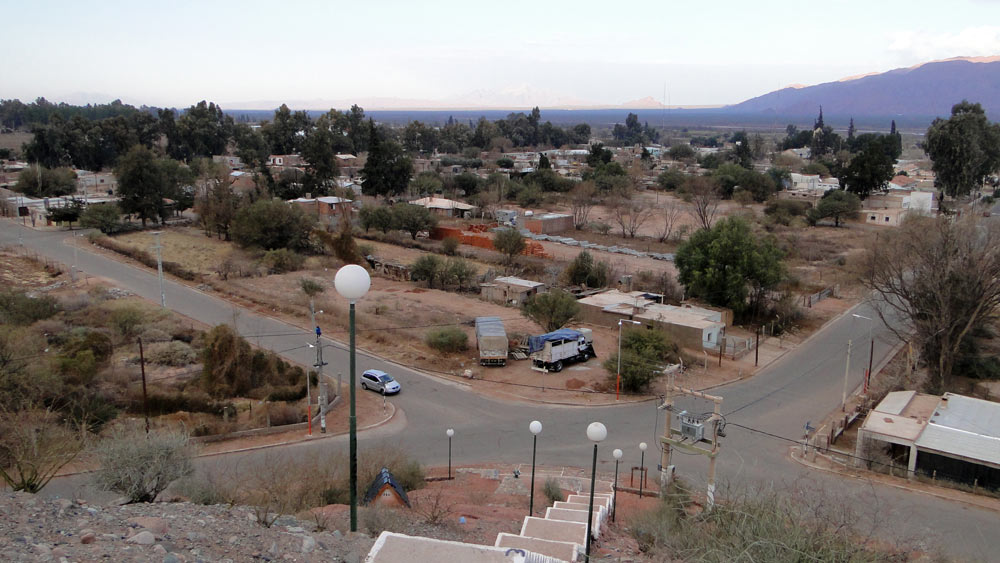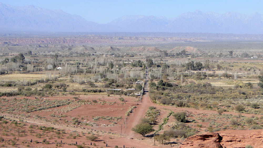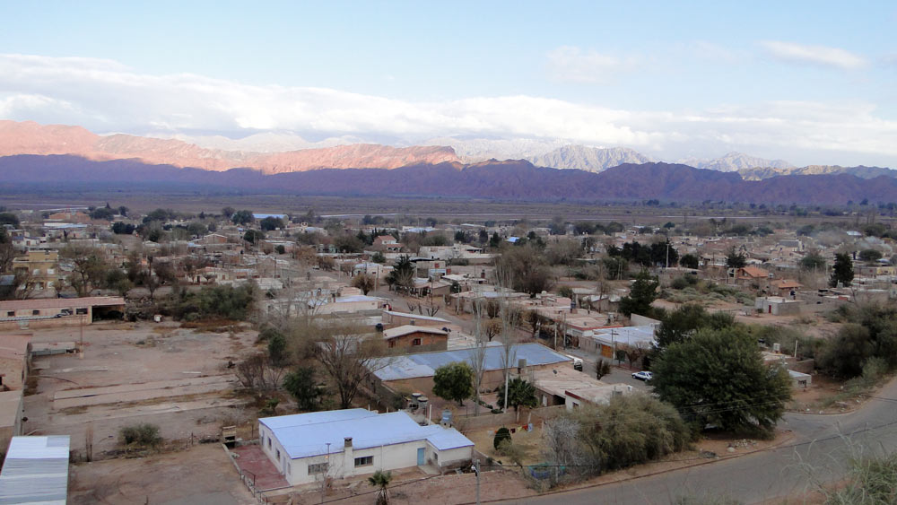 Vista de Villa Unión desde el mirador. Al fondo, la cordillera.