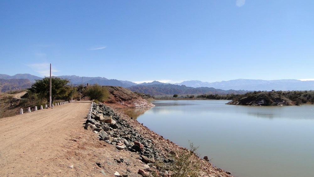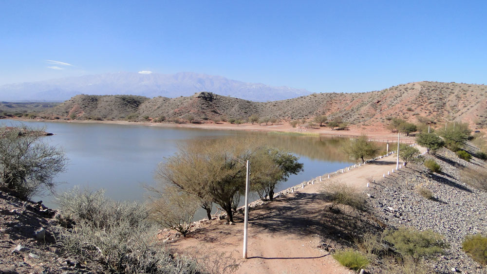 Otra vista del Dique. Al fondo, la cordillera del Famatina