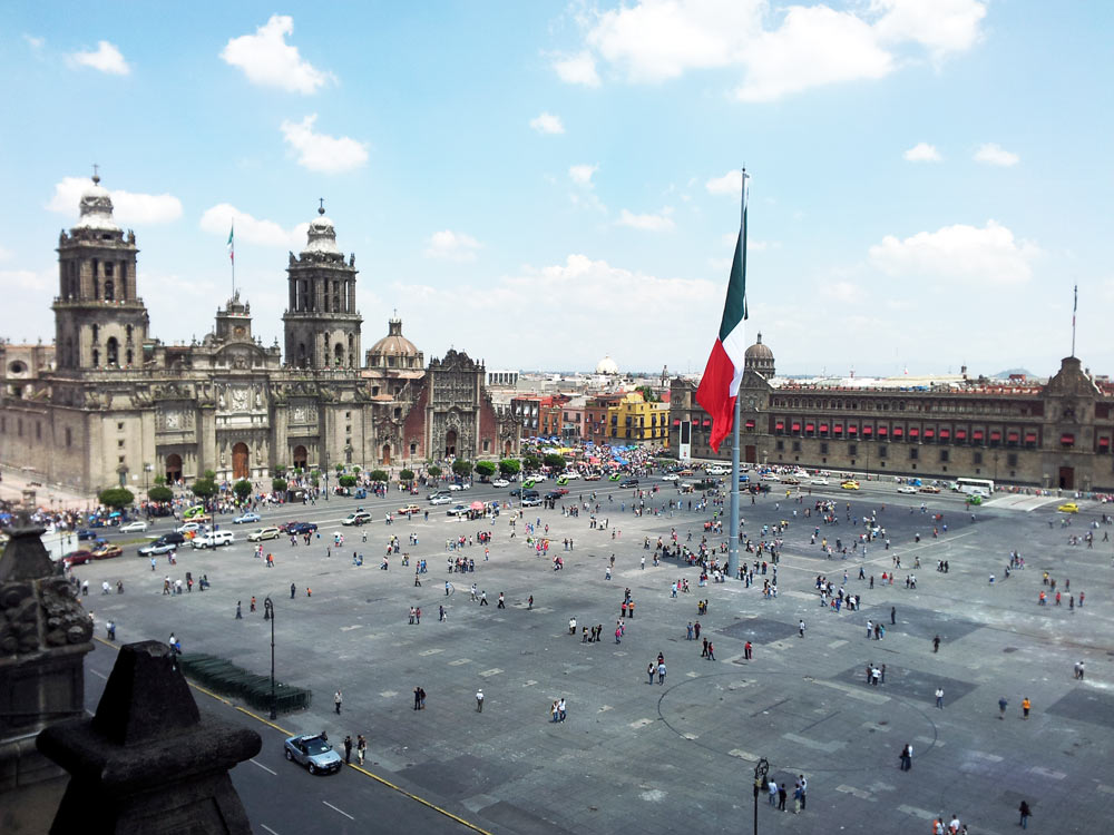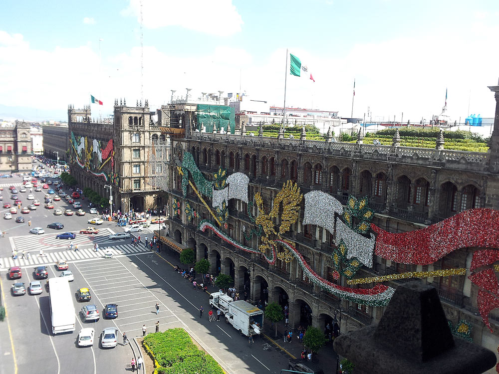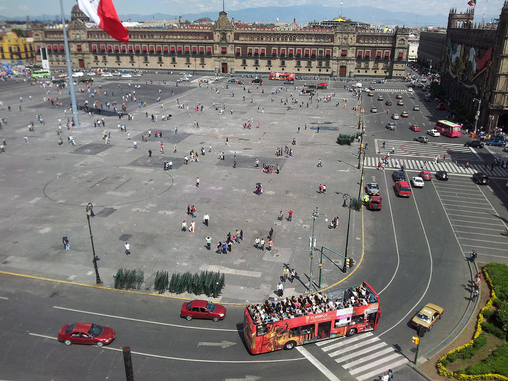 Vista del zócalo desde el restaurante de la terraza del hotel