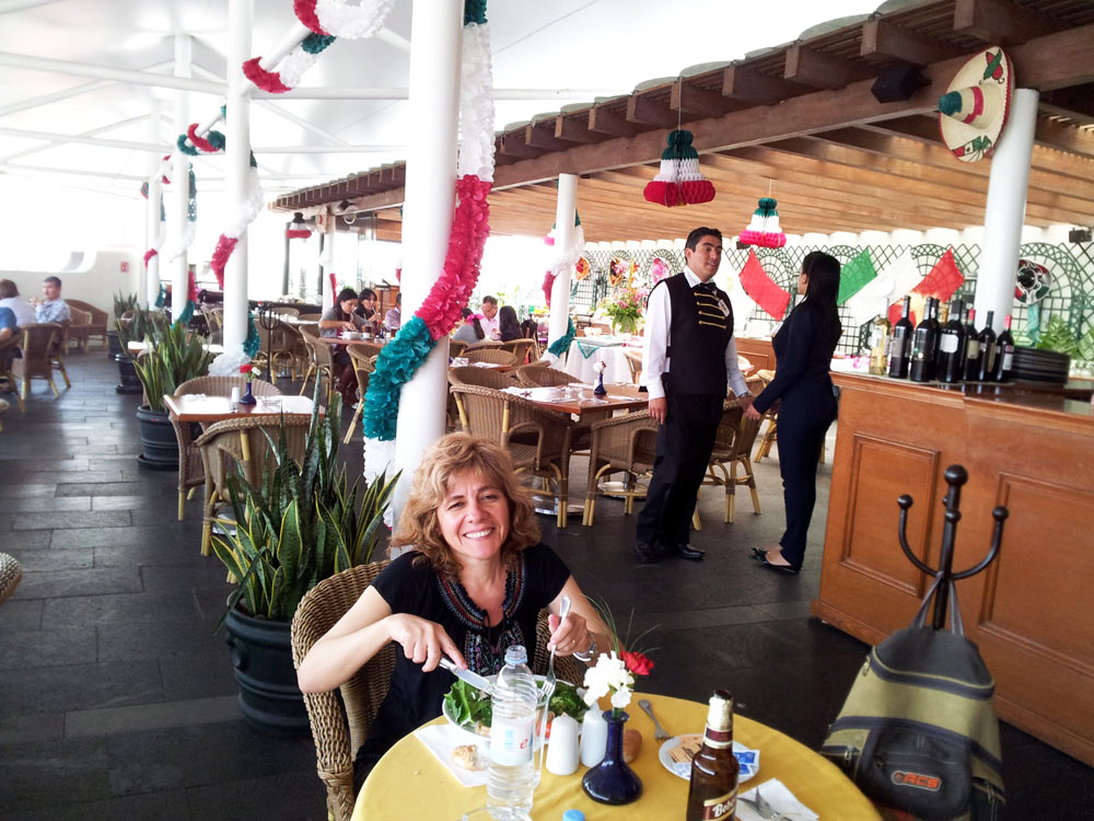 Almorzando en el restaurante de la terraza del hotel Ciudad de
