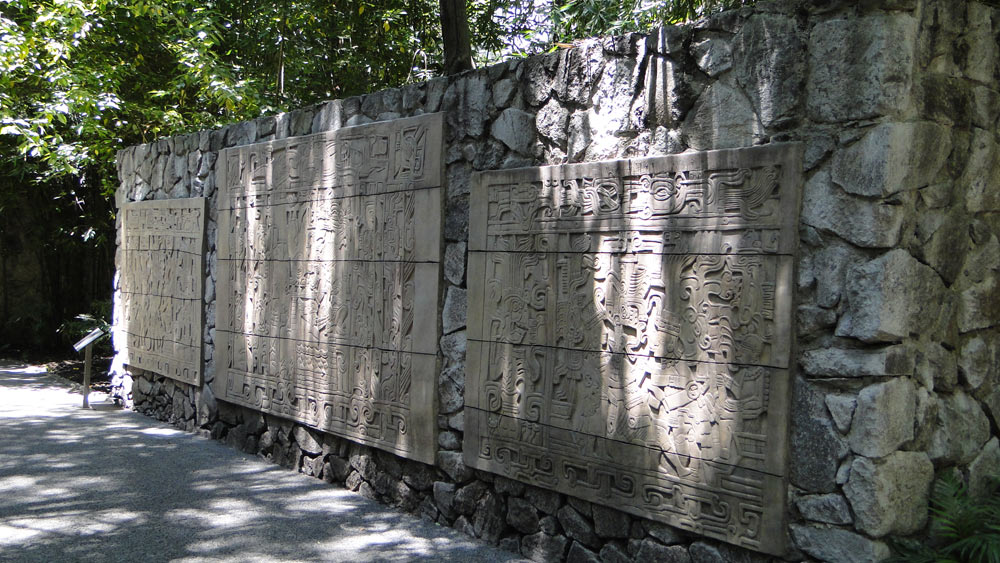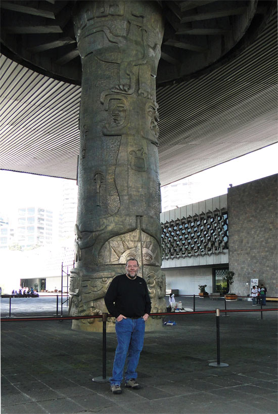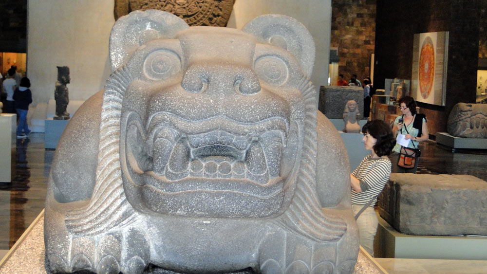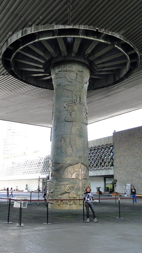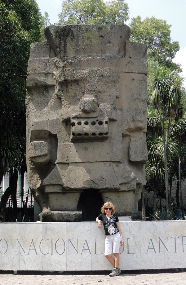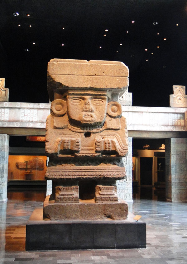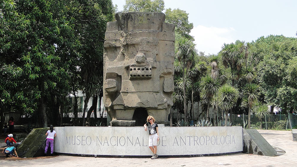 Acceso al Museo de Antropología: monolito de Tláloc sobre la