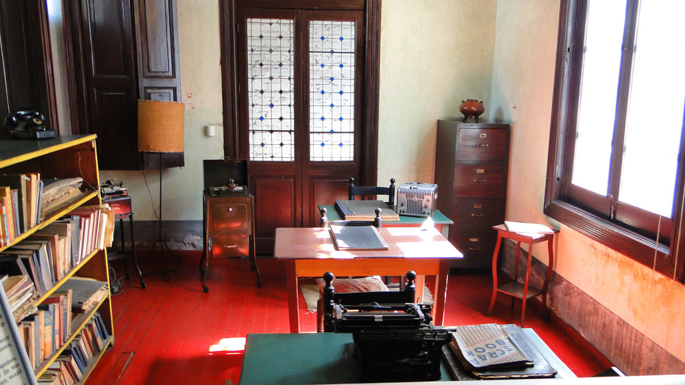al dormitorio de Trotsky y Natalia, la ventana al escritorio de